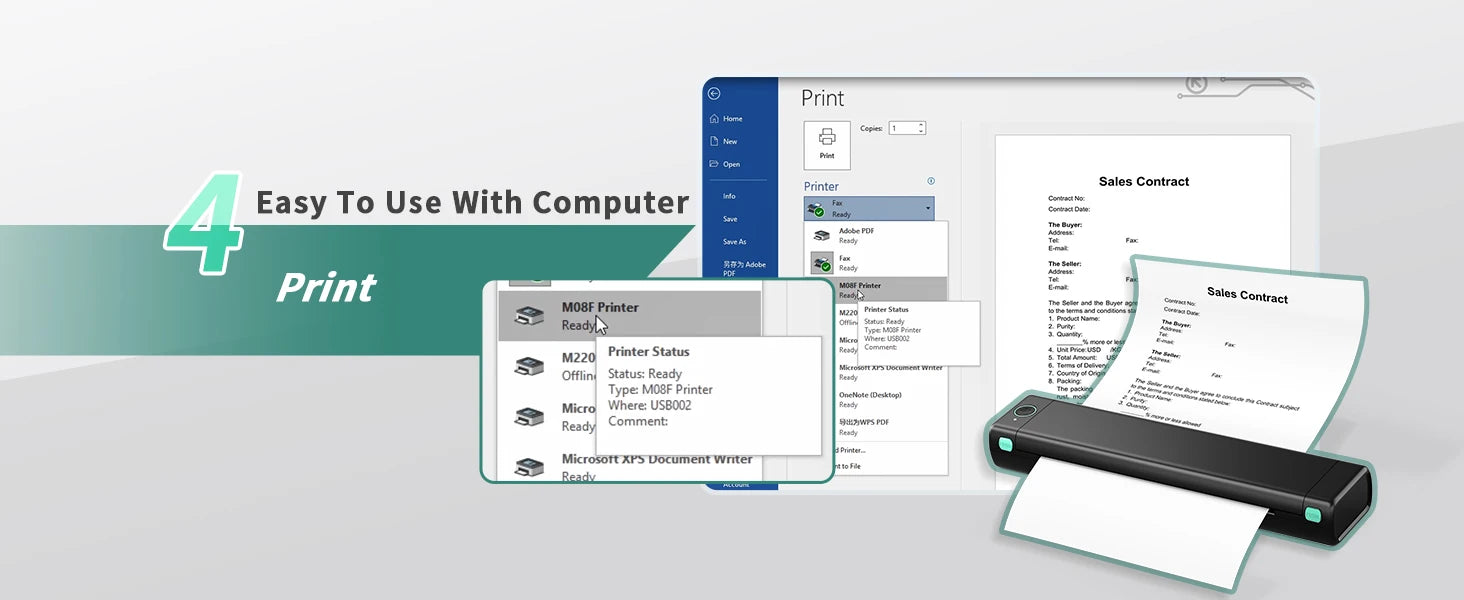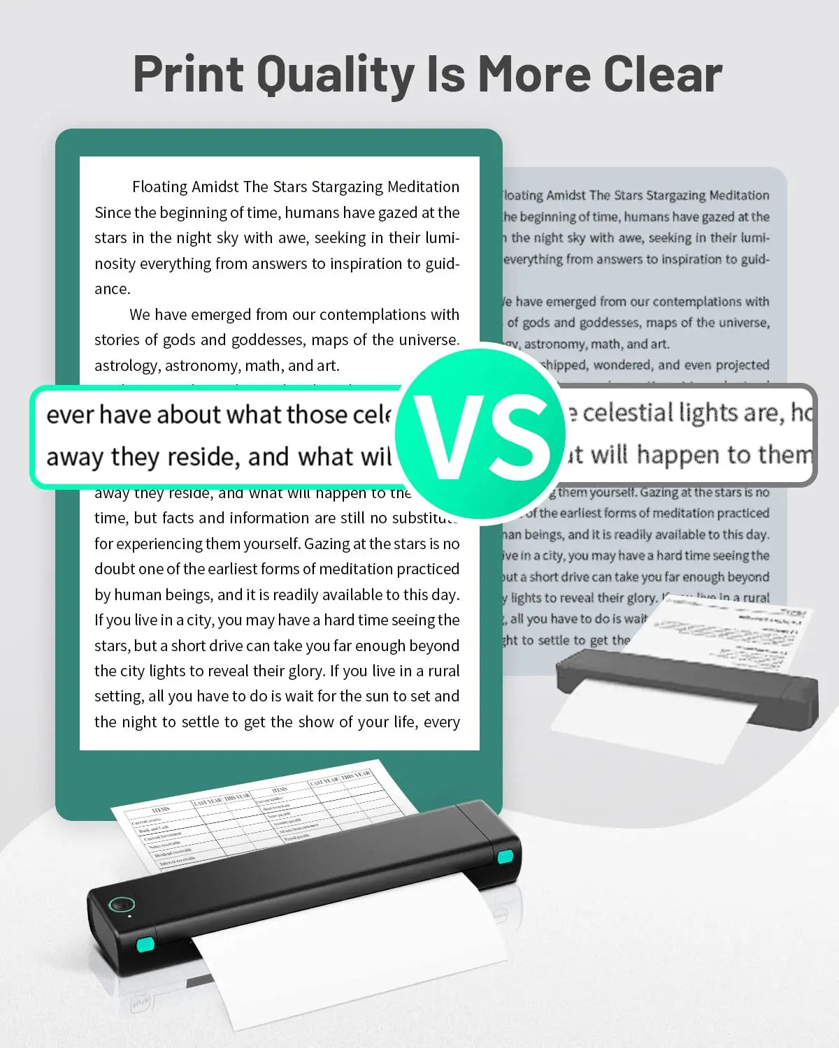 Inkless Printer on the Go - The M08F Portable Thermal Printer requires no ink or ribbon, just thermal paper for clear and clean text and images. More cost-effective and environmentally friendly than traditional inkjet or laser printers.