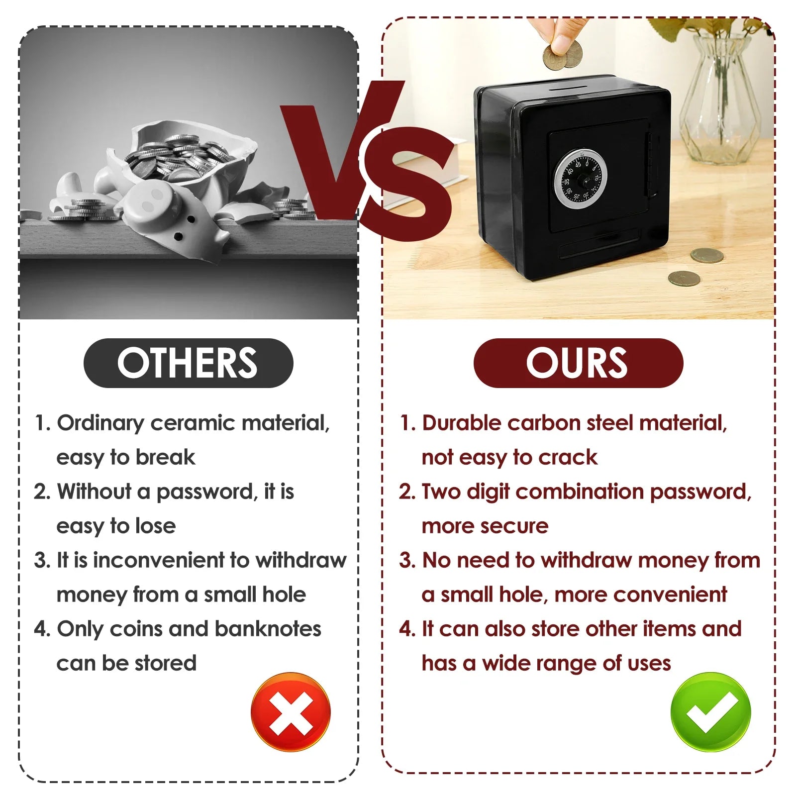 [High Quality Carbon Steel] This money box is made of high quality carbon steel, not easy to fall off, not easy to crack and durable.
