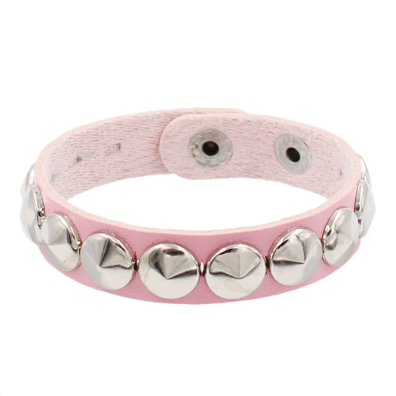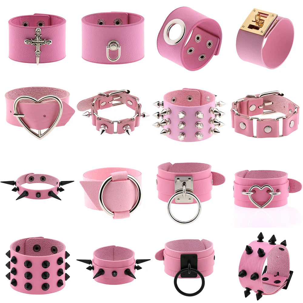 Pink Color Female Wide Leather Bracelets Punk Braided Bracelet for Men Women Wristband Charm Bracelets Male Gothic Jewelry