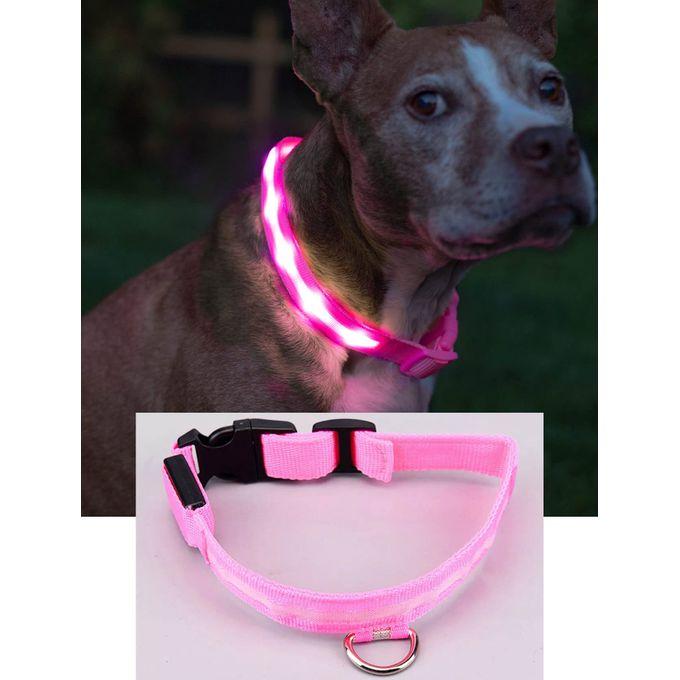 Pink Pet Dog Collar LED Night Flashing USB Rechargeable