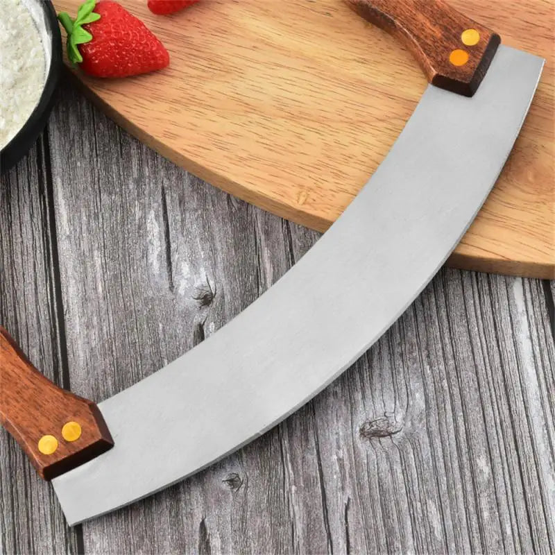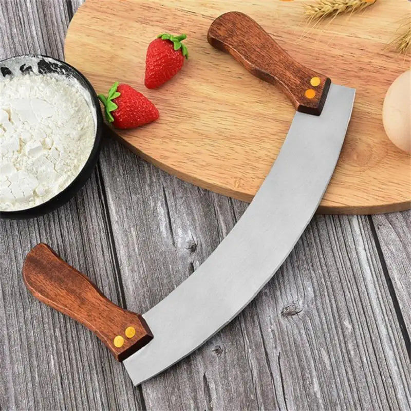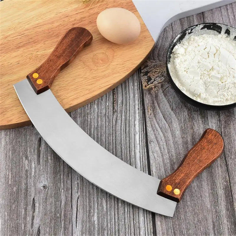 Pizza Knife Nougat Double Wooden Handle Stainless Steel With Curved Scraper Cutter Baking Tool Kitchen Bakeware
