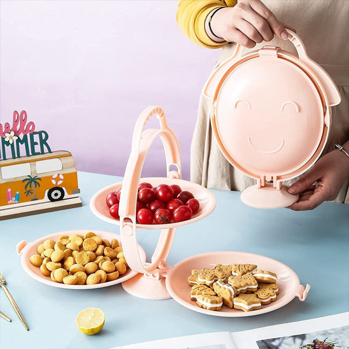 - The foldable 3 Fruit Plate is stack able when not in use and helps to save space making your home more spacious.