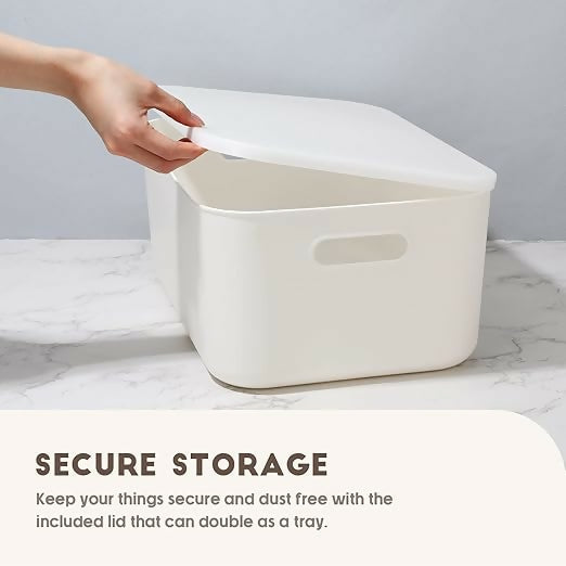 - This container is perfect for storing a wide range of items, including household goods, office supplies, crafts, and more.