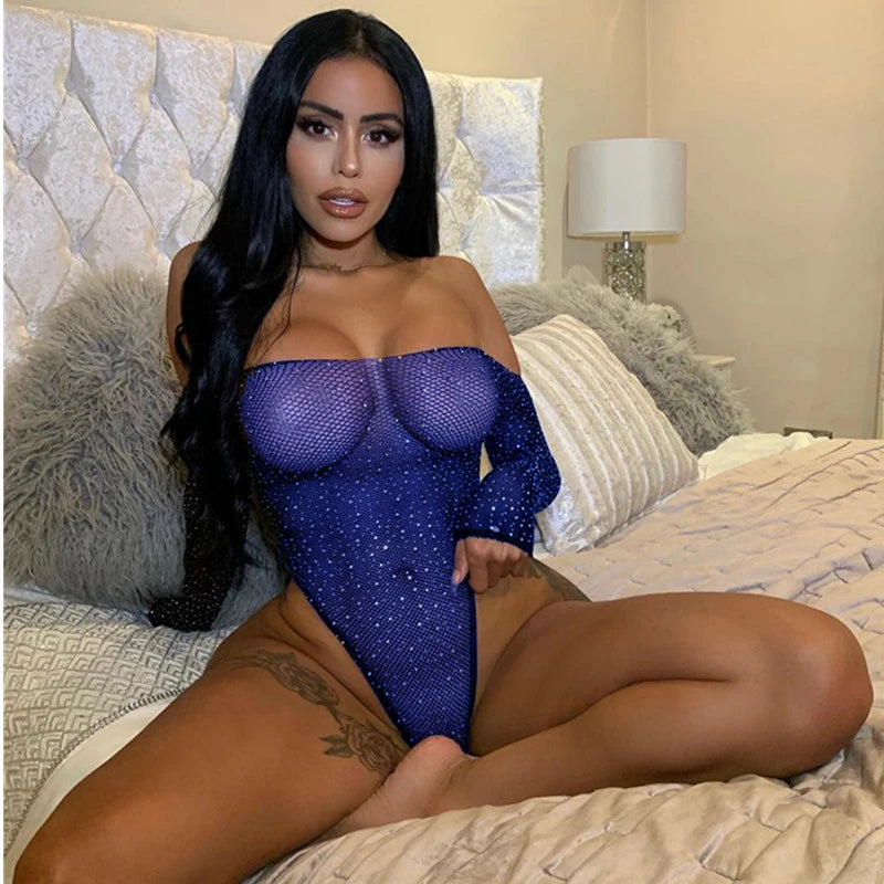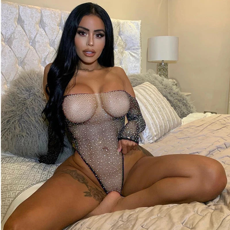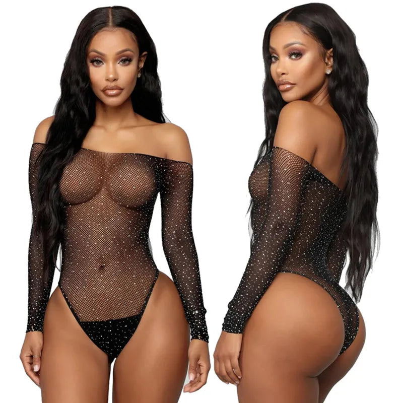 Plus Size Erotic Sexy Lingerie Bling Rhinestone Fishnet Bodysuit Transparent Sex Dress Women Mesh Tights Sexy Exotic Body Socks