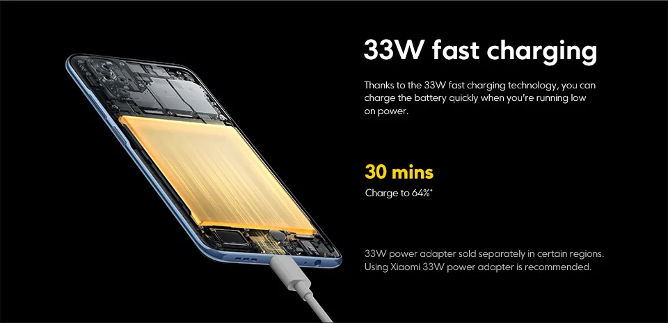 33W power adapter sold separately in certain regions. Using Xiaomi 33W power adapter is recommended.