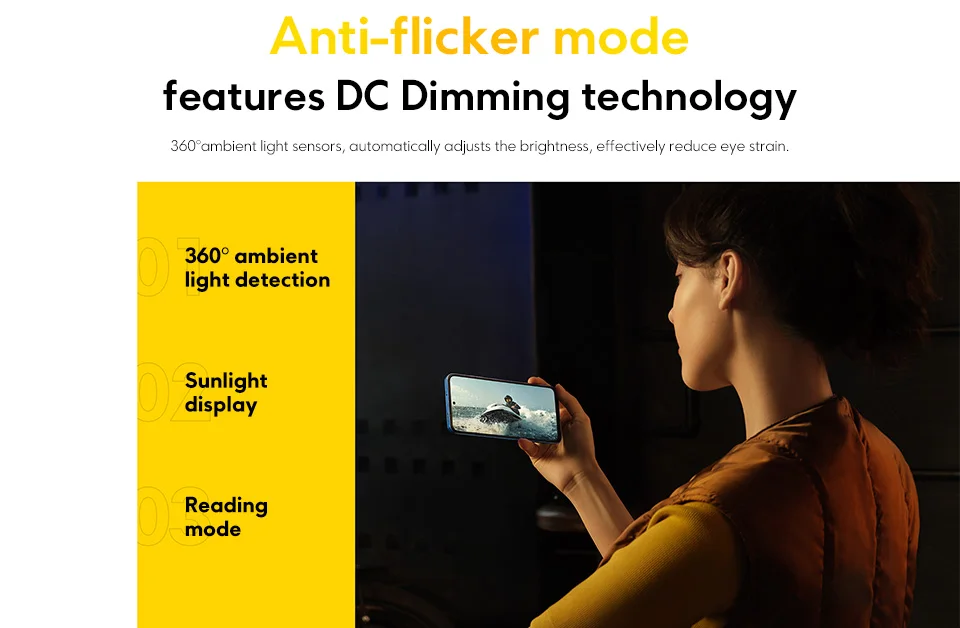 360°ambient light sensors, automatically adjusts the brightness, effectively reduce eye strain.