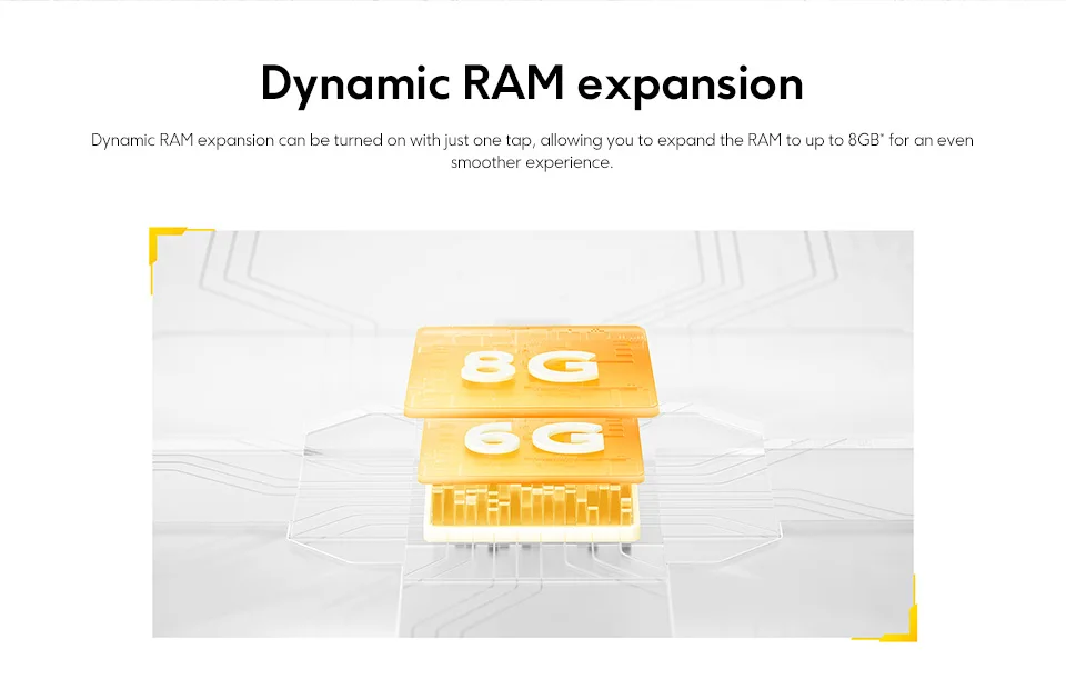 Dynamic RAM expansion can be turned on with just one tap, allowing you to expand the RAM to up to 8GB* for an even smoother experience.