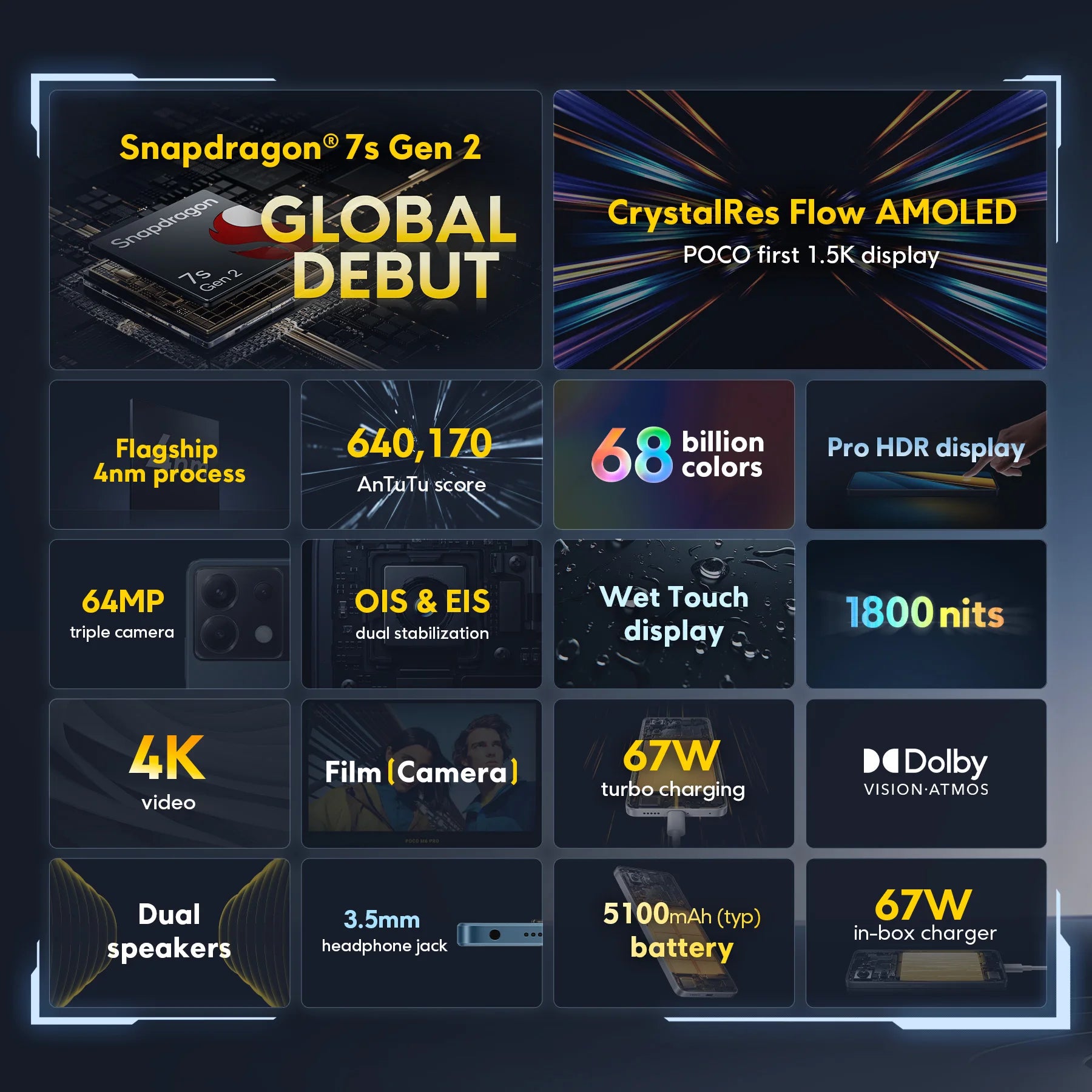 POCO X6 5G Global Version Smartphone Snapdragon 7s Gen 2 Octa Core 120Hz Flow AMOLED Display 64MP Camera 67W Turbo Charging NFC