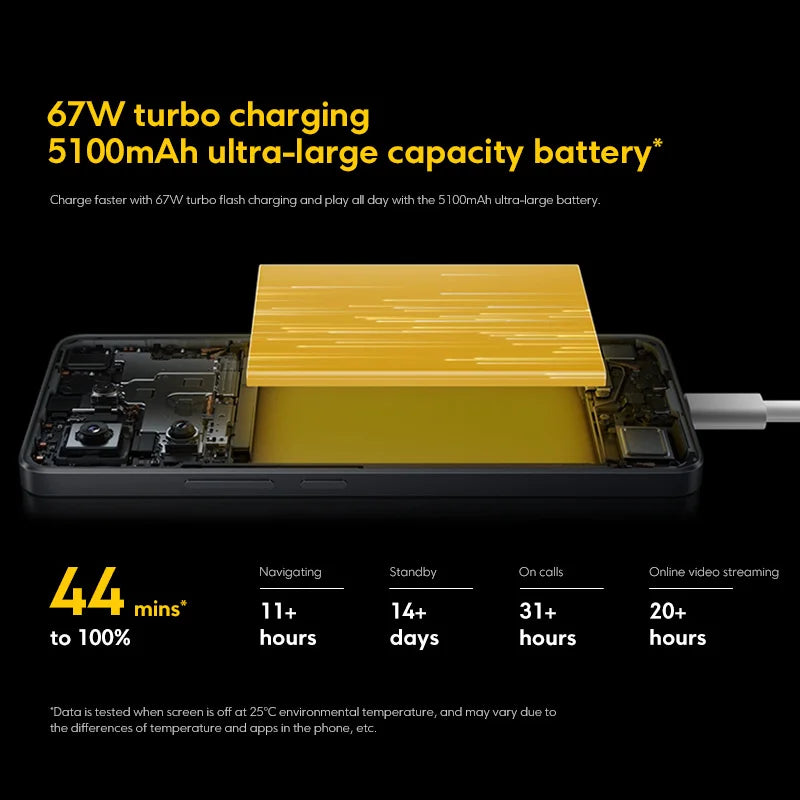Battery--------- 5100mAh (typ), Support 67W Turbo Charging