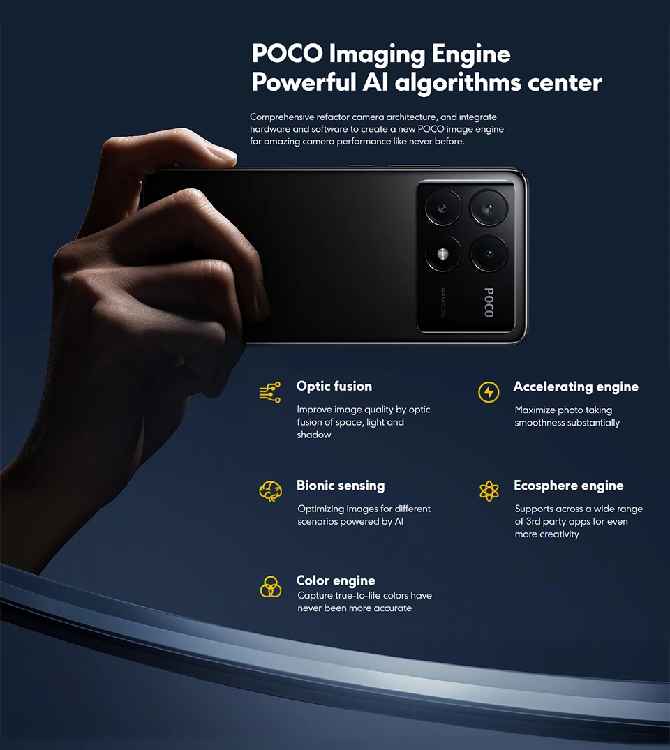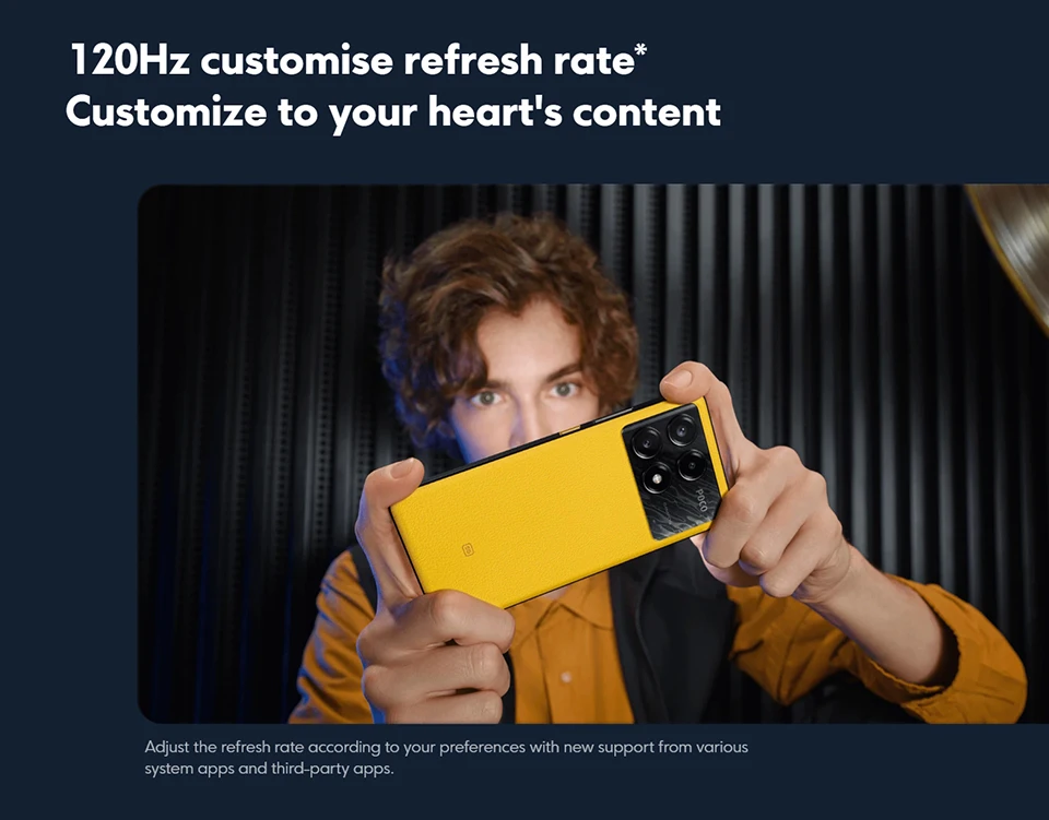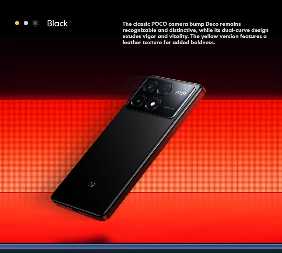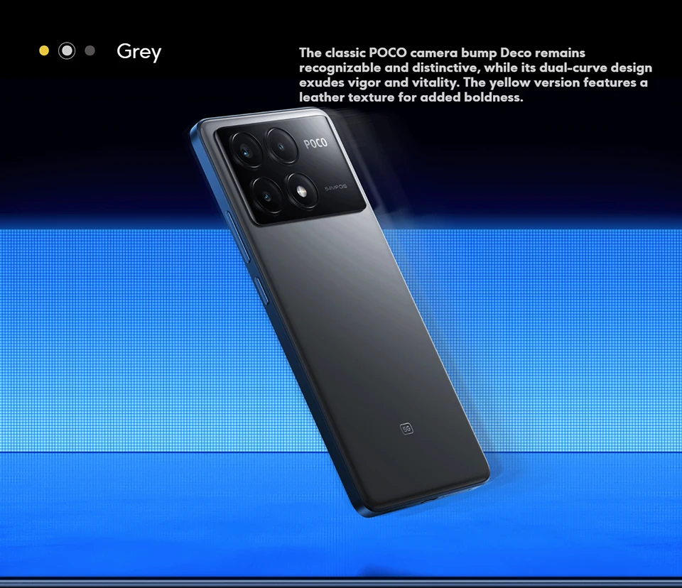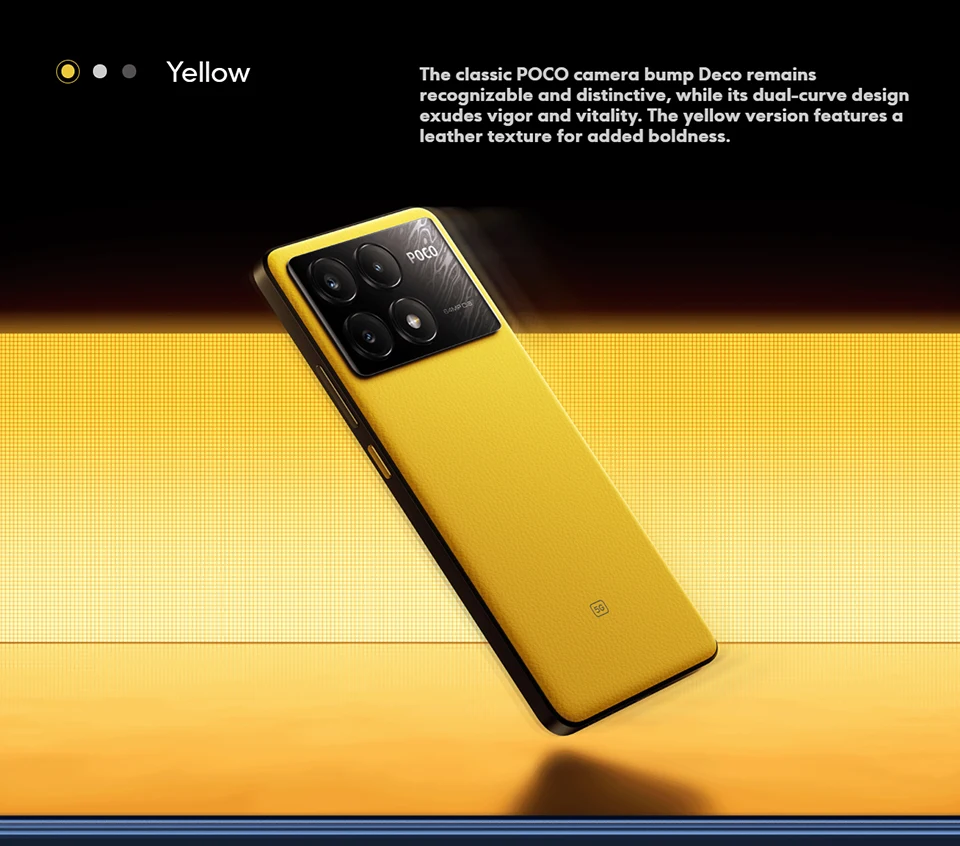 The classic POCO camera bump Deco remains recognizable and distinctive, while its dual-curve design exudes vigor and vitality.The yellow version features a leather texture for added boldness.
