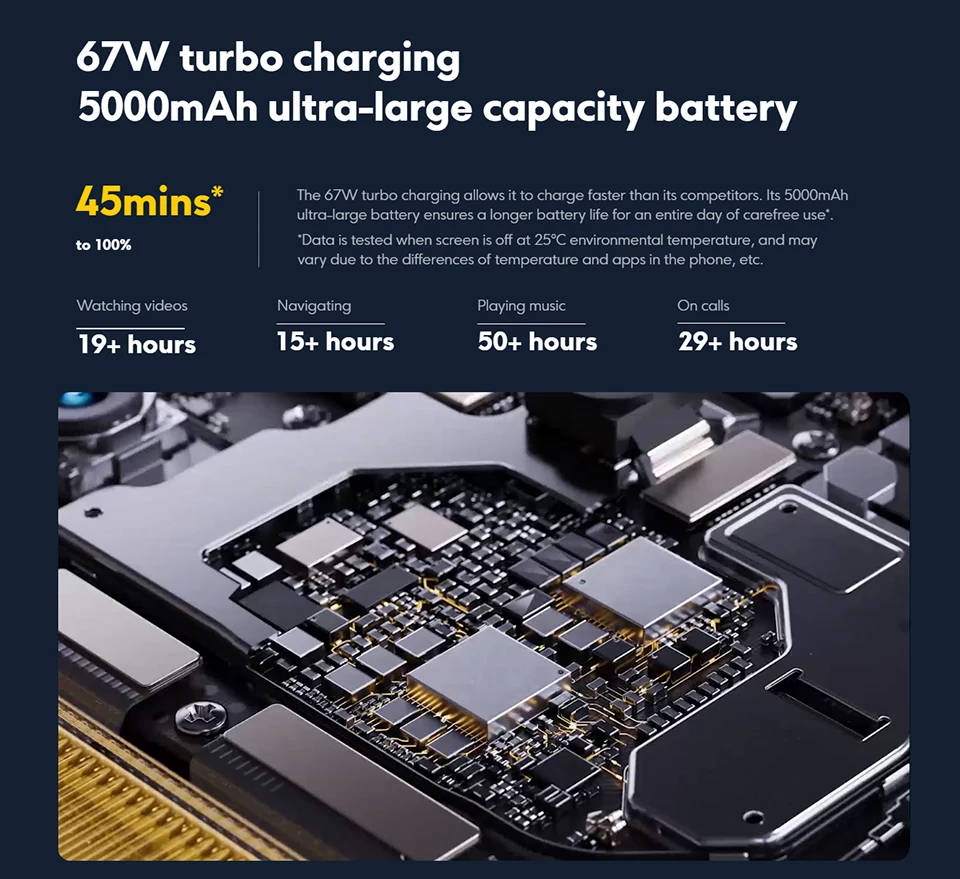 Battery --------- 5000mAh (TYP) battery, 67W turbo charging