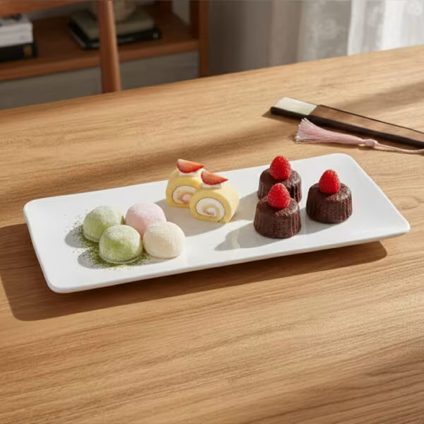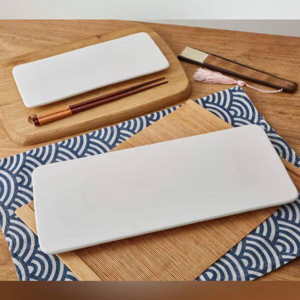 Bring a touch of elegance to your table with this porcelain rectangular sushi plate, perfect for serving sushi, tapas, appetizers, or desserts. Its sleek, minimalist design allows your food to shine while adding a modern look to your dining experience. Strong enough for everyday use and stylish enough for entertaining, it’s a versatile piece for any kitchen.