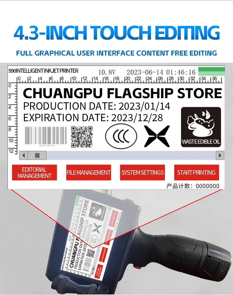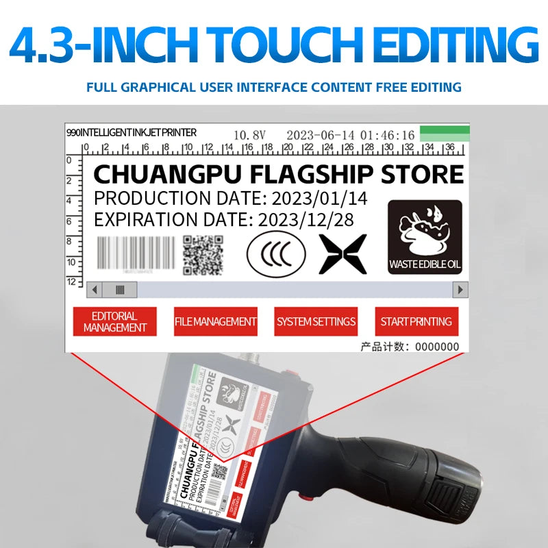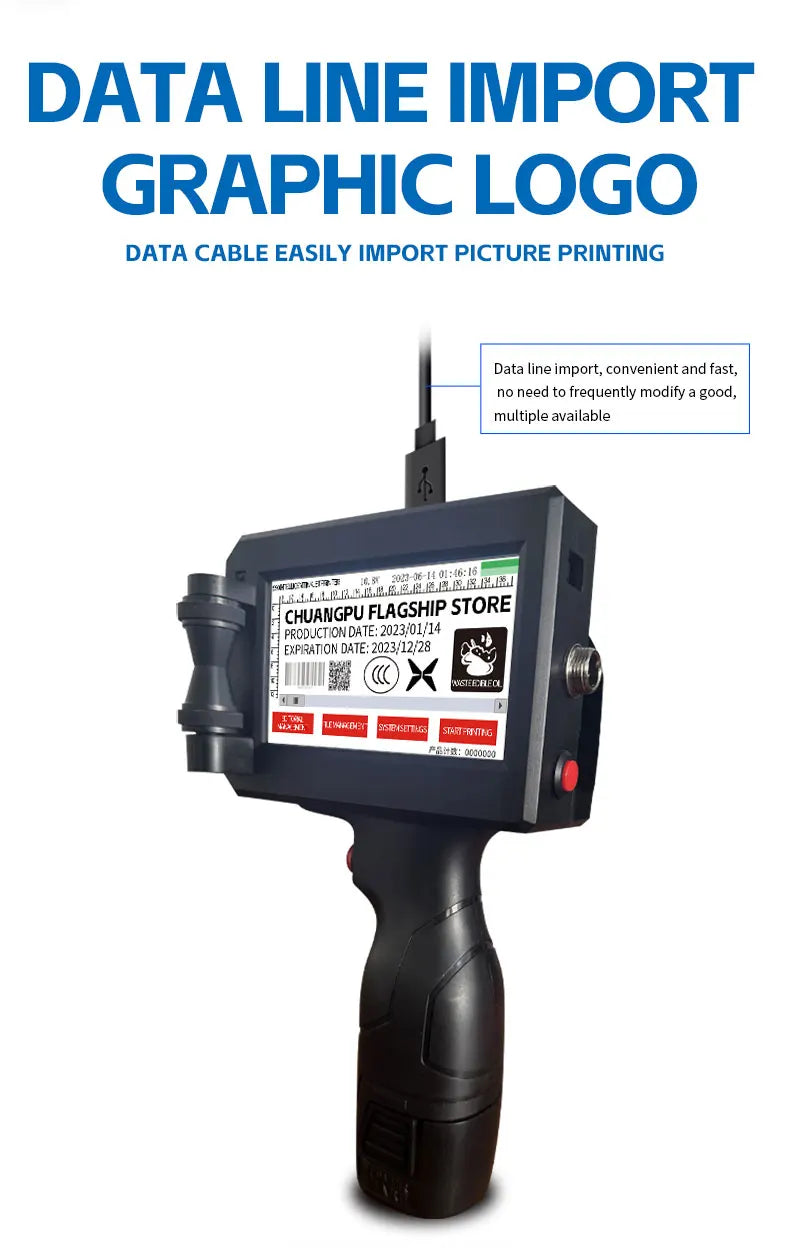 Portable 12.7mm Handheld Inkjet Printer QR Barcode Batch Number Logo Expiry Date Label Printer Gun 25 Languages Non-encrypted