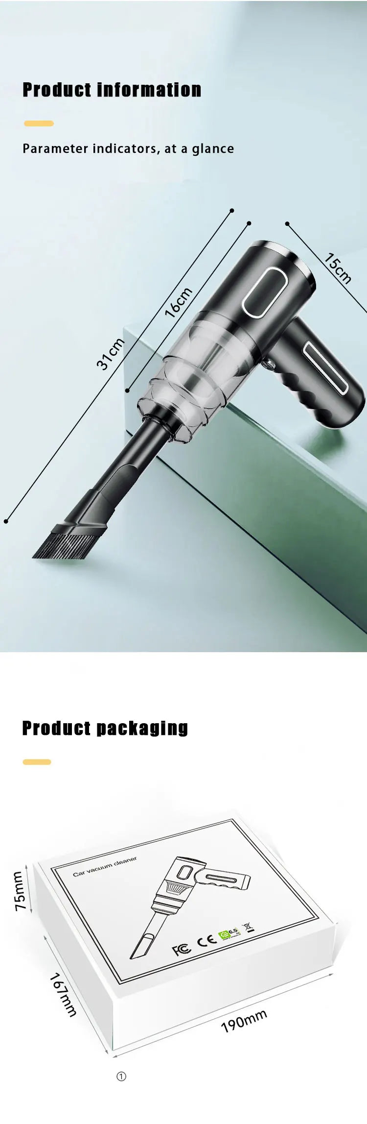 Portable Car Vacuum Cleaner WireLess Charging Handheld Car Household High-Power Multi-Functional Small Vacuum Cleaner