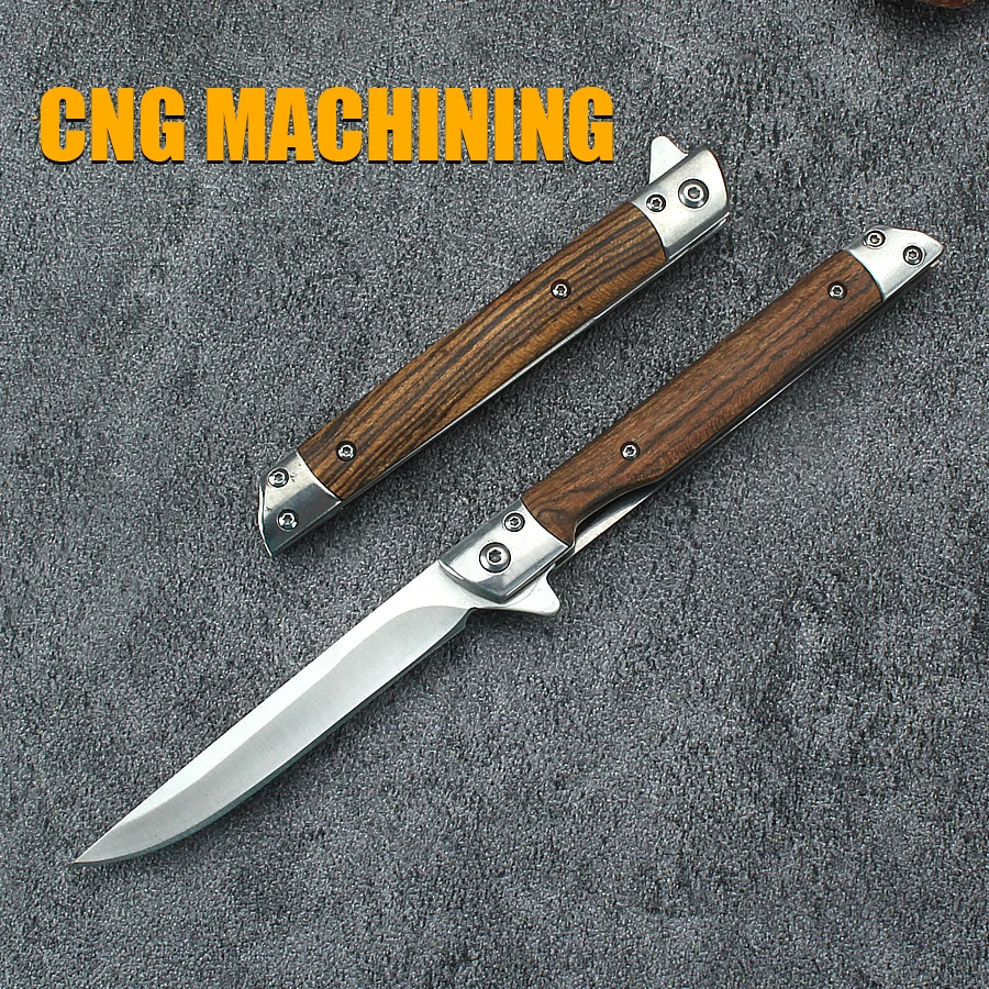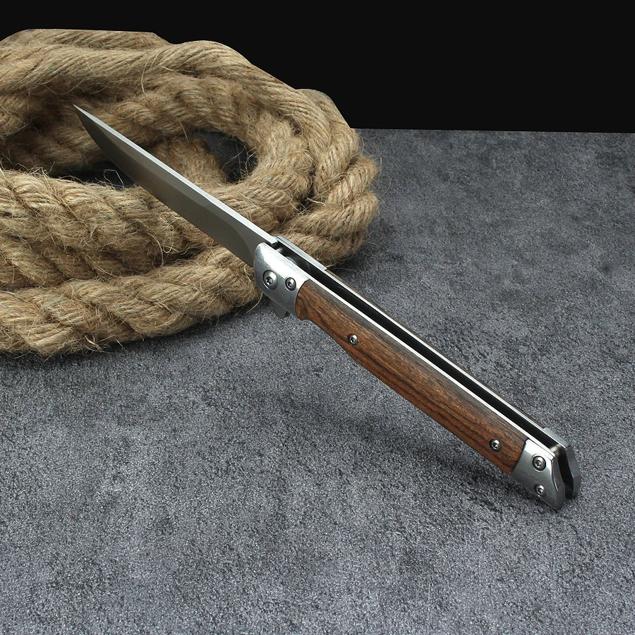 Portable Damascus Carry Pocket Knife Survival Knife Folding Knife Outdoor Tactical Knife Survival Camping Knife Wooden Handle