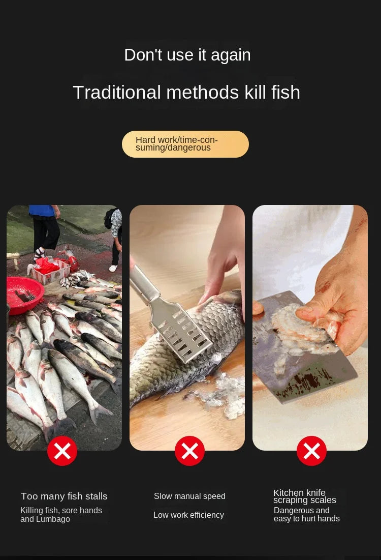 2. Super fast fish scale scraper: especially suitable for quick scraping and removal of fish scales in the fish market or at home. Food safe 304 stainless steel roller blade and ABS material.