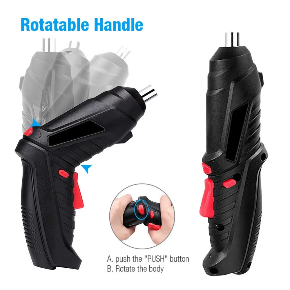 • 47 in 1 Rotated 90 Degrees :This electric screwdriver has 47 different functions and can be rotated 90 degrees, making it easier to use in tight spaces.