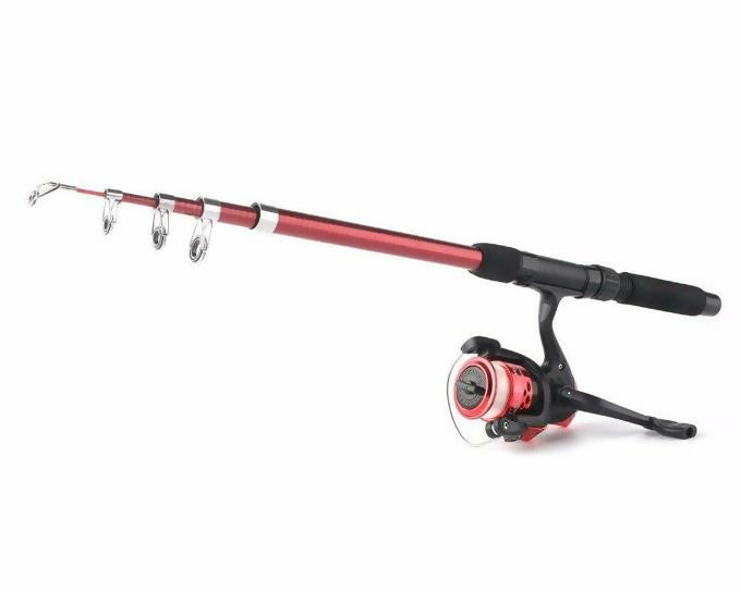 Portable Extendable Fishing Rod Combo (Rod, Reel, Line, Hooks) Collapsible Pole Spinning Reel
