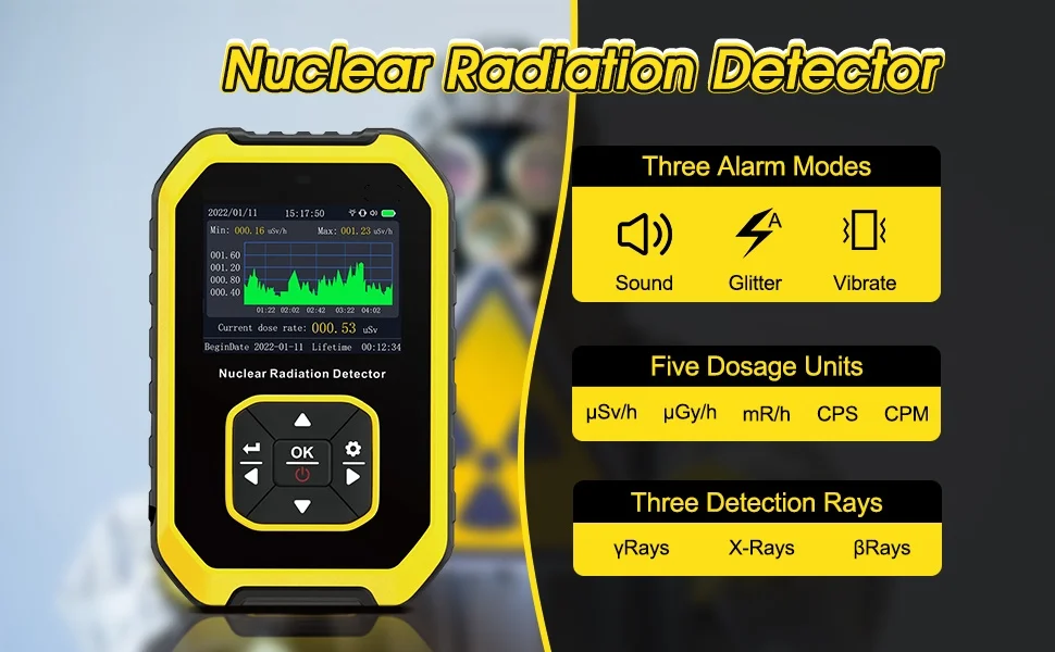 Portable Geiger Counter Nuclear Radiation Detector Personal Dosimeter X-ray γ-ray β-ray Radioactivity Tester Marble Detector