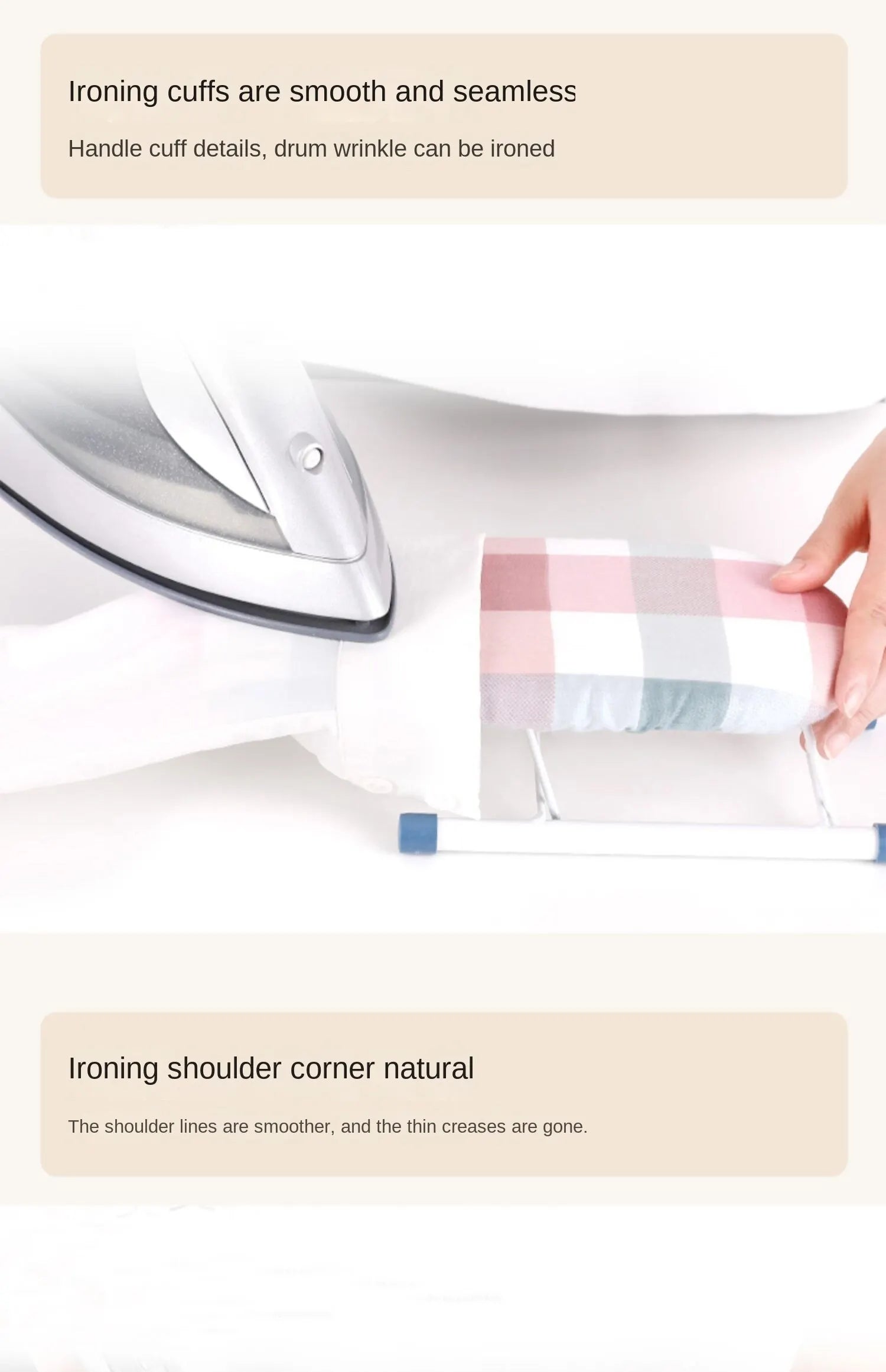 • Sleeve Attachment :The sleeve attachment allows for easy and convenient ironing of sleeves without the need for additional tools.
