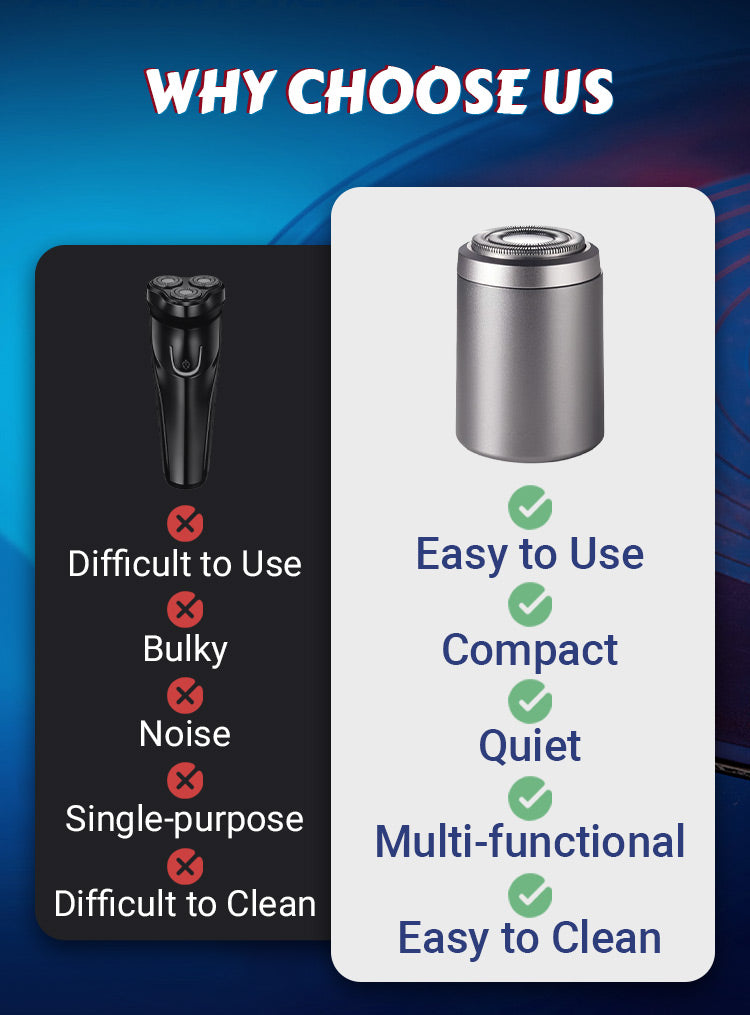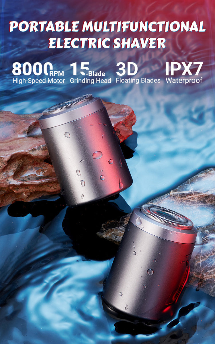 Portable Multifunctional Electric Shaver Rechargeable Travel Mini Men Razors Long Endurance Hair Trimmer IPX6 Waterproof Wet/Dry