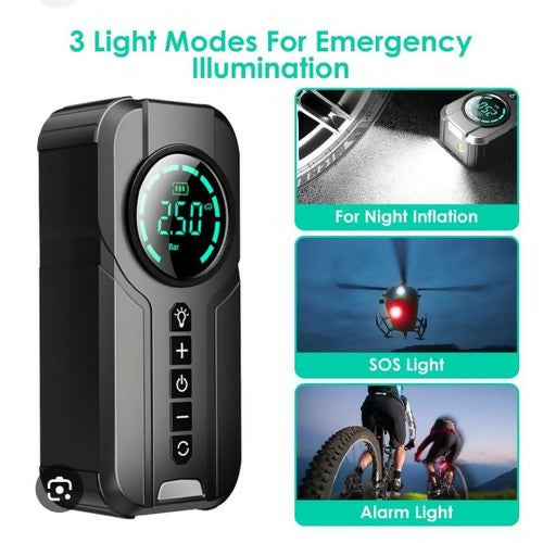 Portable Smart Air Pump With Torch ,Can Be Operated From Smart Phone. Car Cigar Lighter Powered.
