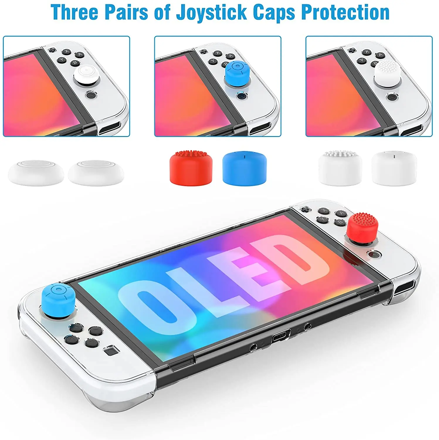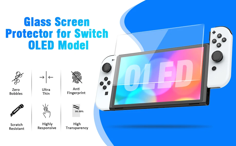 3. Full Protection and Premium Screen Protector: HD PET Full coverage, Super thin & Sturdy design. screen protector offers ultimate touchscreen sensitivity and protect your eyes. 3 pairs of silicone touch points thumb grips caps, full protect your switch during game.