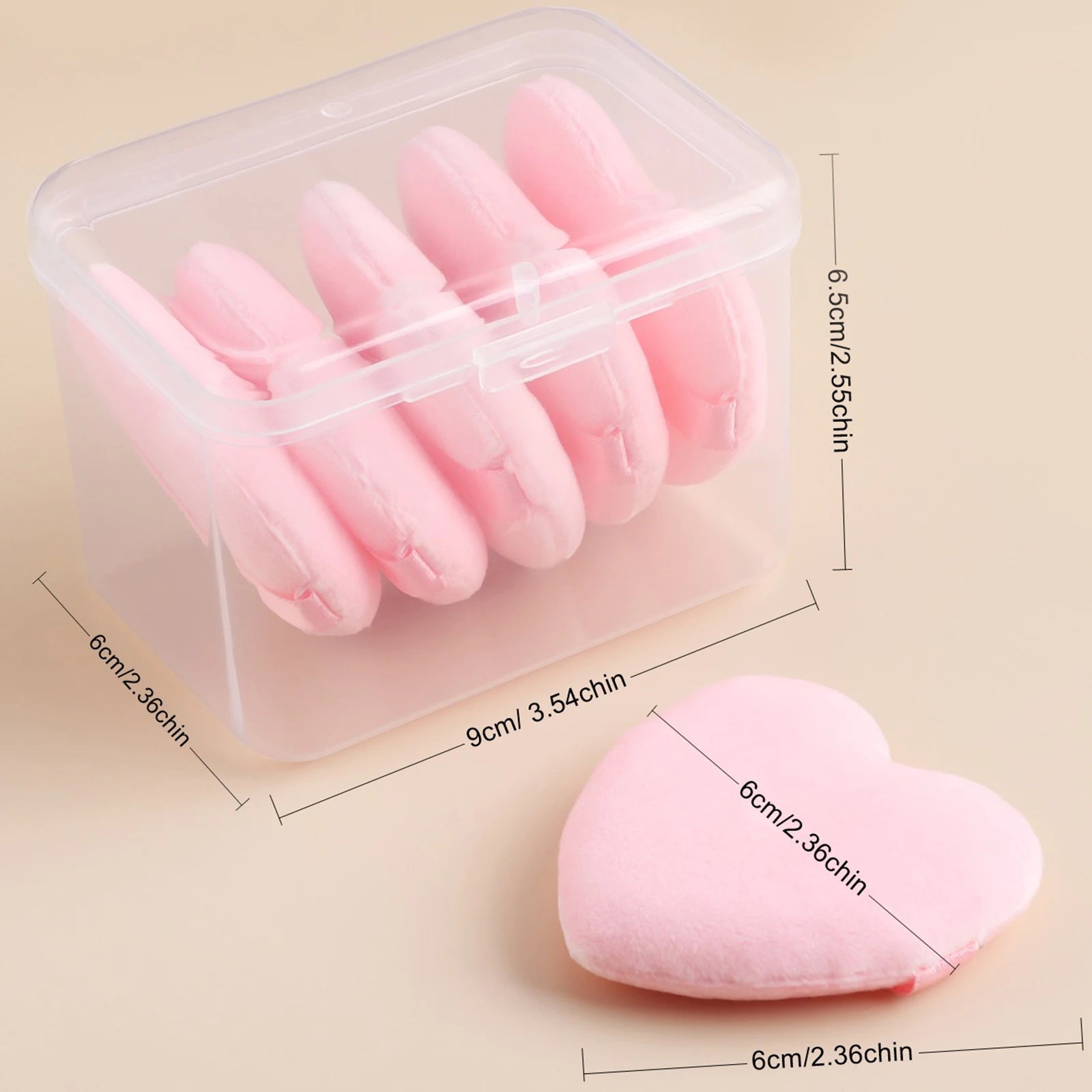 Powder puff, 6pcs/box heart shaped fluffy soft skin-friendly make-up tools can be reused