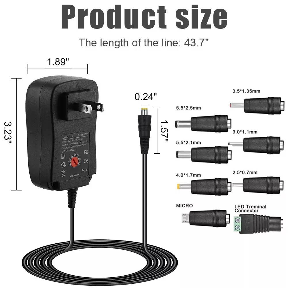 Power Adapter Universal Adjustable Voltage Power Supply AC/DC Adapter EU/US/AU /UK Plug Charger 8Tip 30W