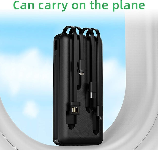Power Bank with 4 Inbuilt Cables, Fast Charging External Battery, Compatible with iPhone iPad Samsung, Android Smartphone Tablet and More