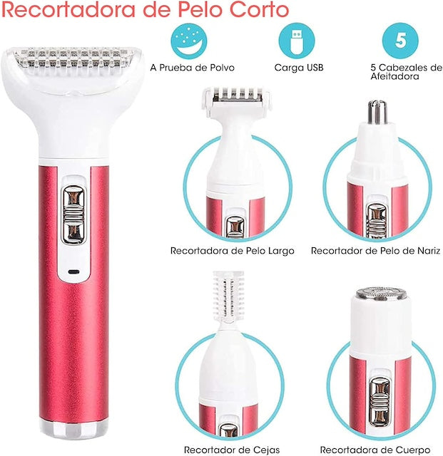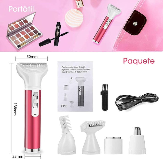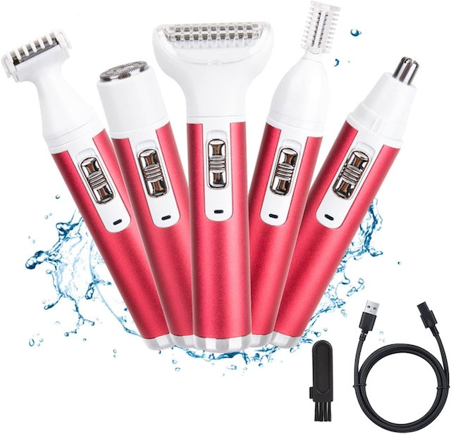 Powerful 5-in-1 Shaver/Trimmer, Rechargeable Facial Epilator, Female Electric Shaver for Facial Hair, Eyebrows, Armpits