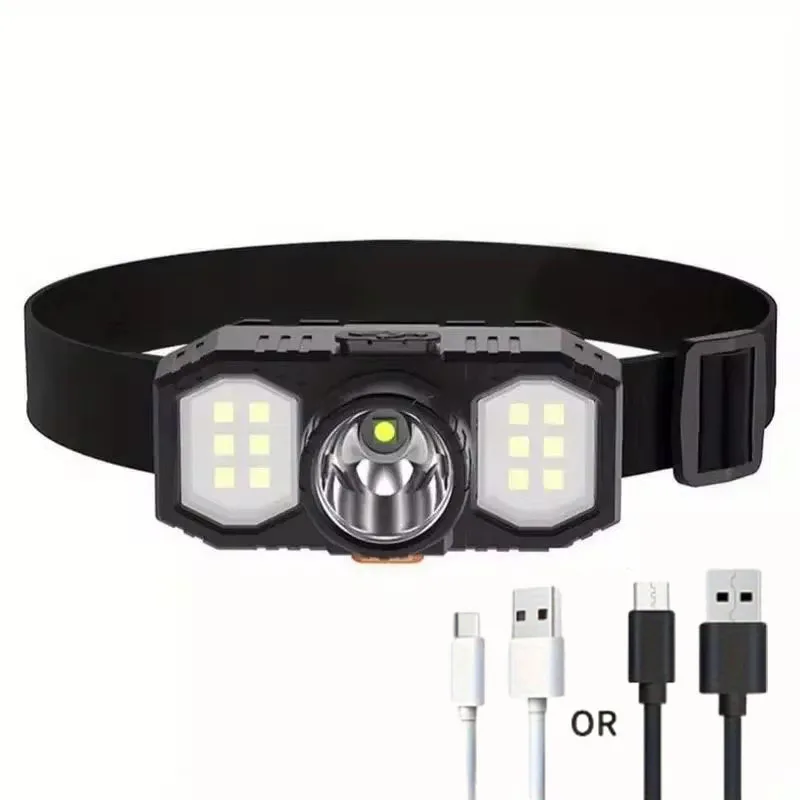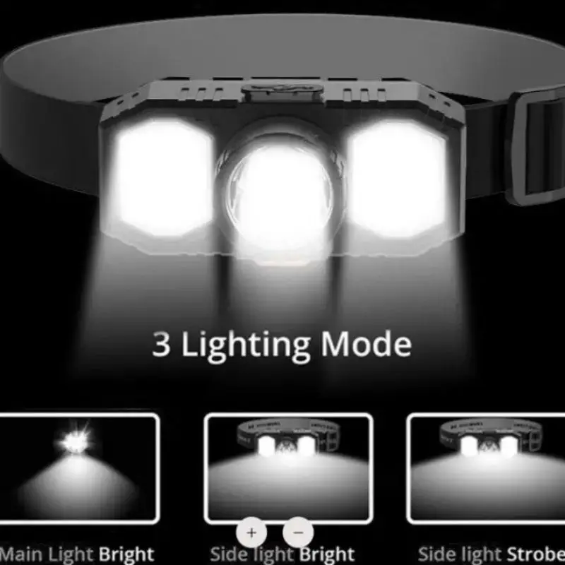 Powerful LED Headlamp Portable Rechargeable Camping High Power LED Flashlight COB IP65 Waterproof 3 Modes For Fishing Running