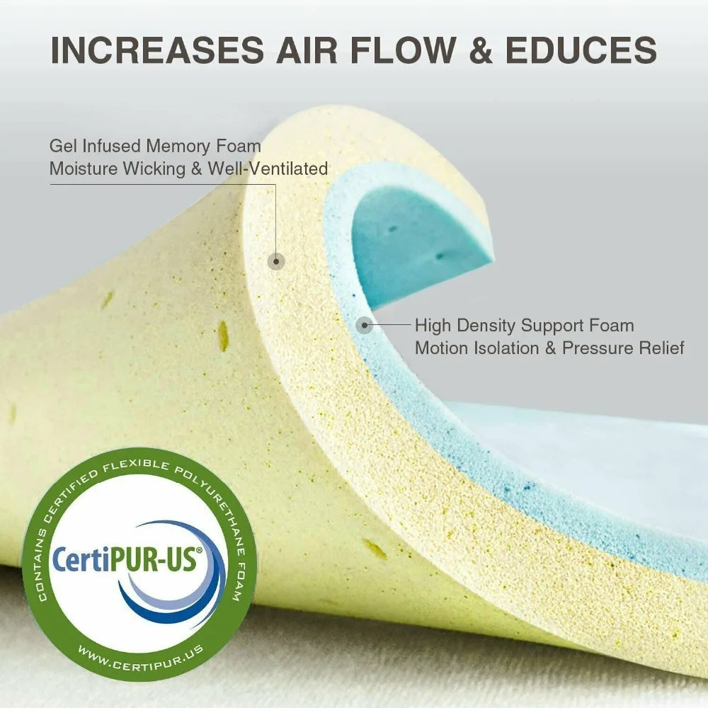 This memory foam topper is infused with Gel ,it will regulate your body temperature during the night.
