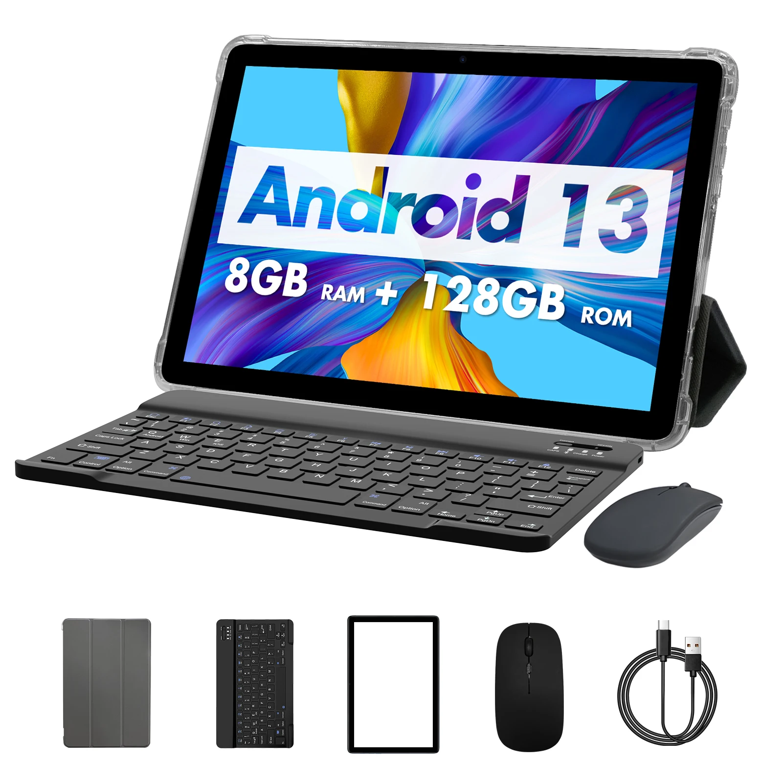 PRITOM TAB11 Android 14 Tablet 10 Inch, 8GB(4+4 Expand) RAM + 128GB ROM, Octa Core, 5G WiFi, with Keyboard, Mouse, Case