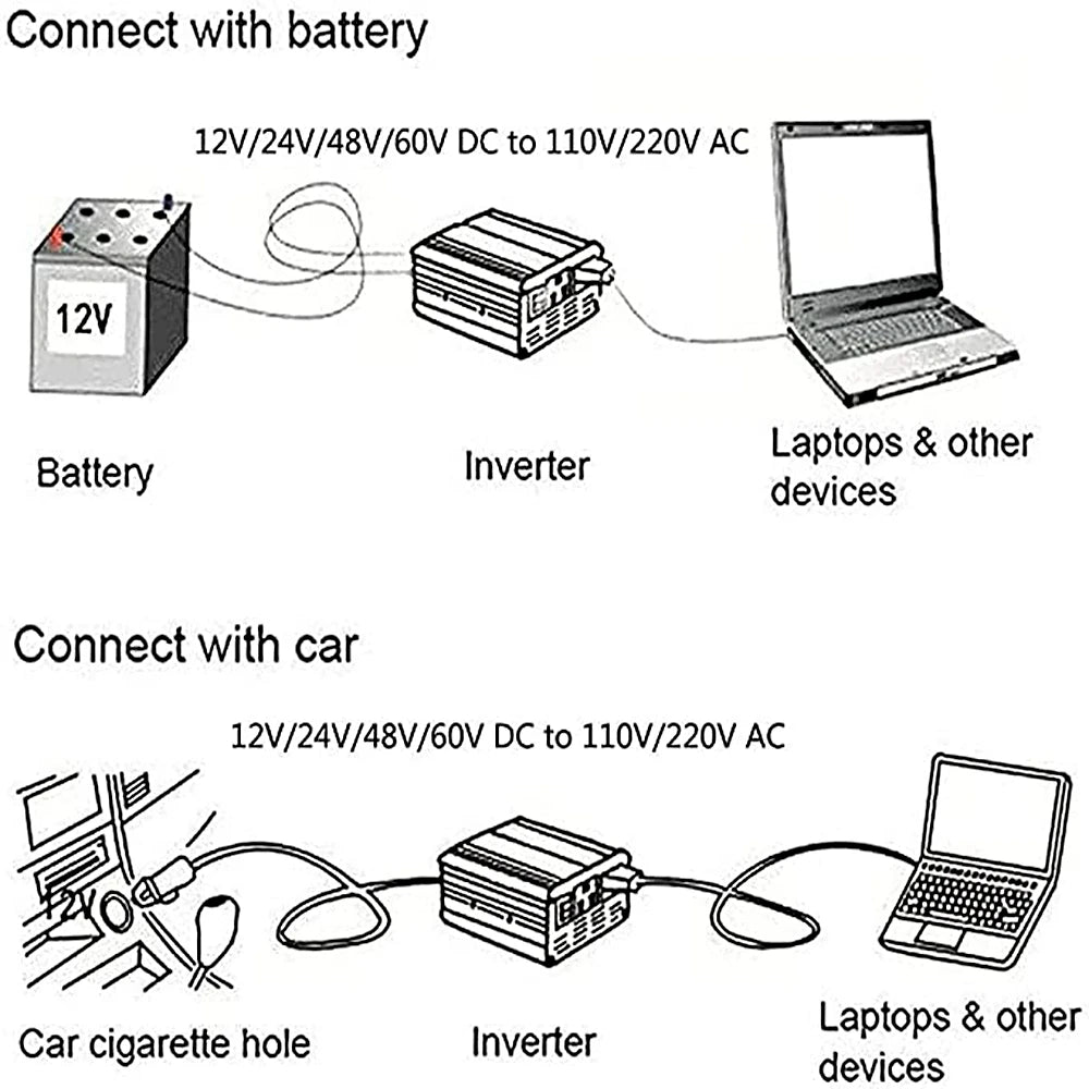(When the inverter inputs 12V and the voltage is lower than 10.5V or higher than 15V, it will automatically protect and disconnect the power supply)
