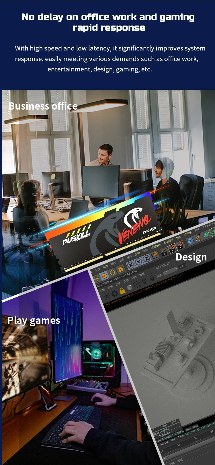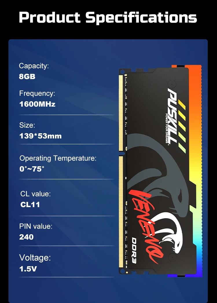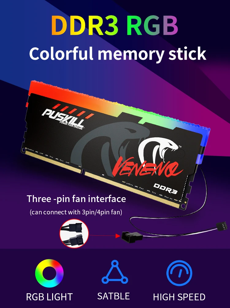 PUSKILL Memoria RAM RGB DDR3 8GBx2 1600MHz 12800S Udimm Dual Channel DIMM Desktop Memory Rams