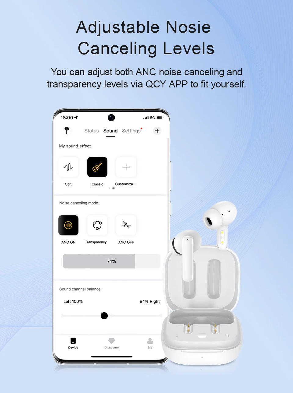 You can adjust both ANC noise canceling and transparency levels via QCY APP to fit yourself.