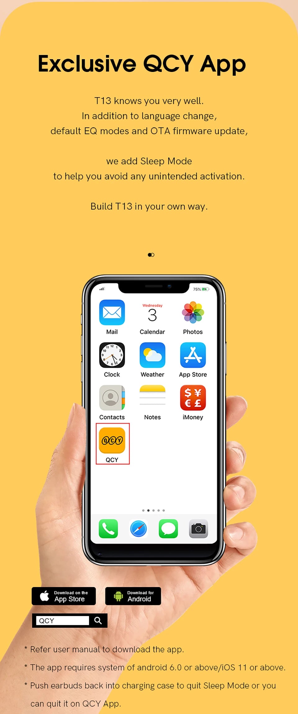 * Push earbuds back into charging case to quit Sleep Mode or you can quit it on QCY App.