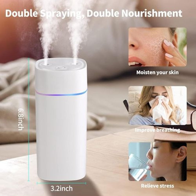 Quiet 600ml Humidifier, Multipurpose Mini Double Jet Portable Humidifier for Double Nourishment, Car Humidifier