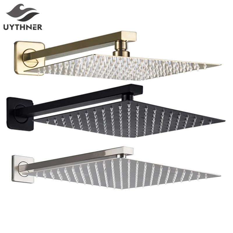 Rainfall Shower Head 8"/10"/12" Square Bathroom Ultrathin Rain Top Shower Head with Shower Arm Faucet Accessories Wall Mounted