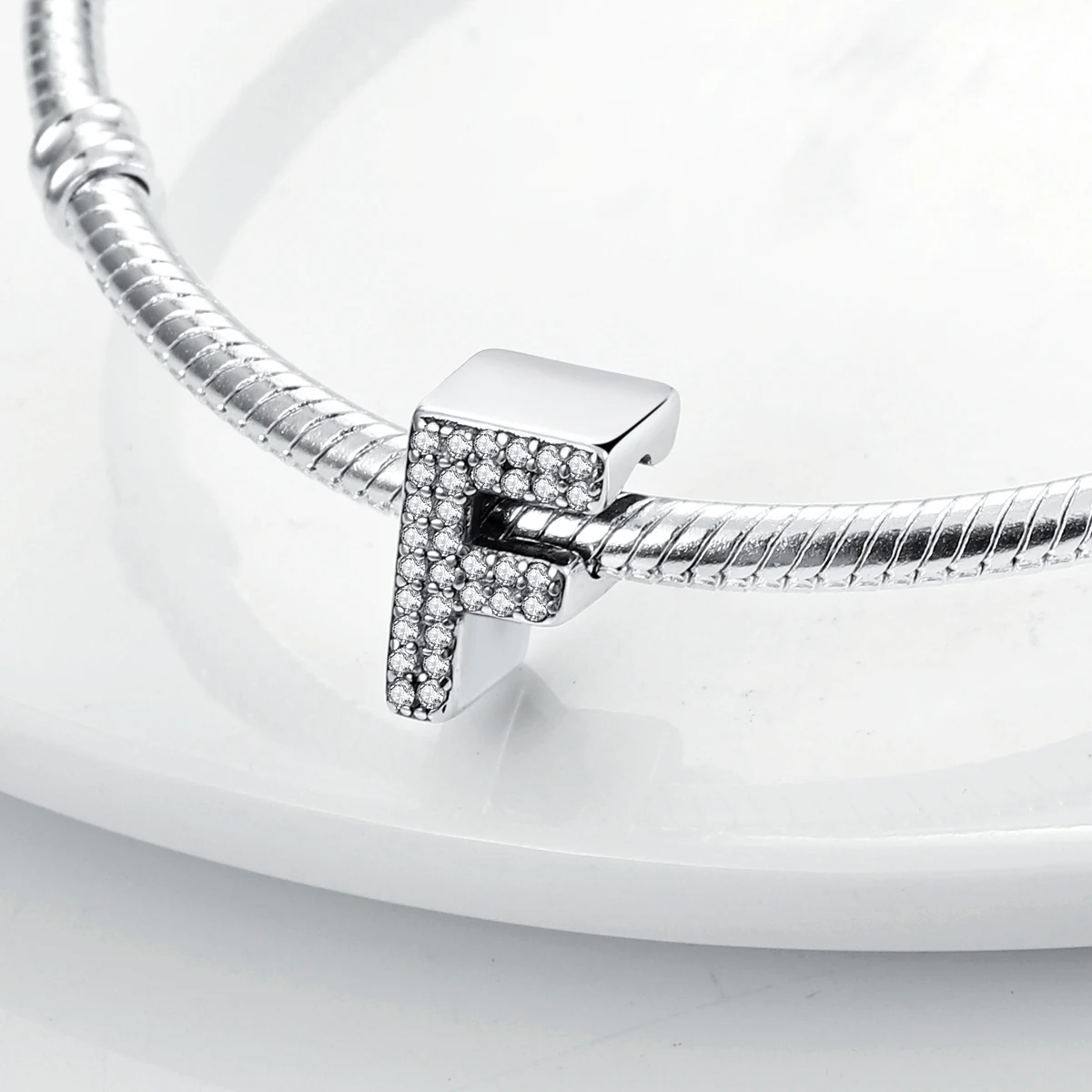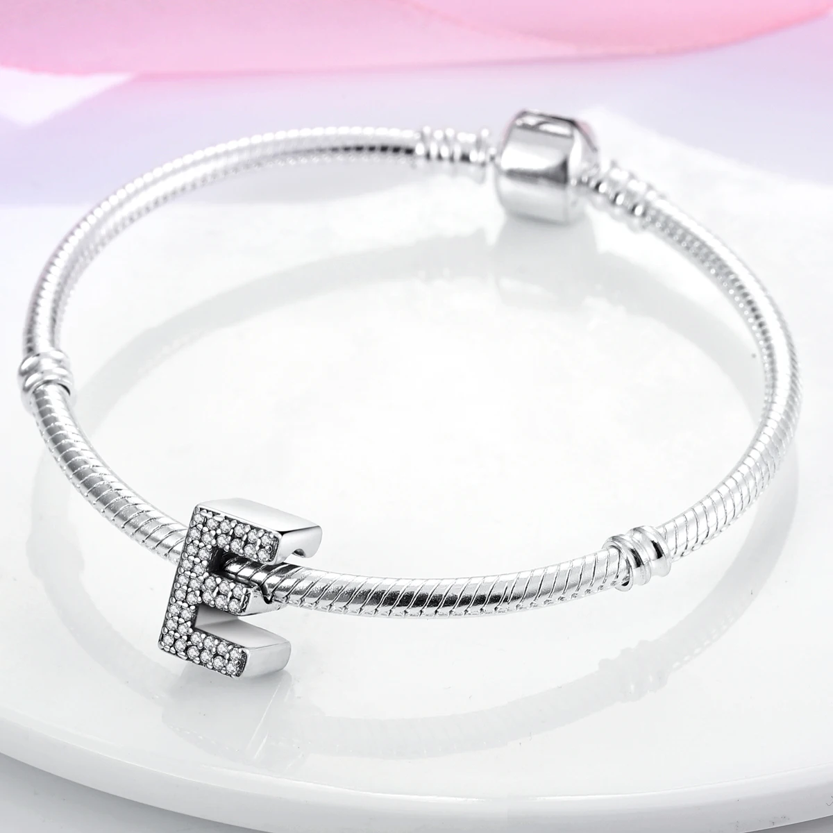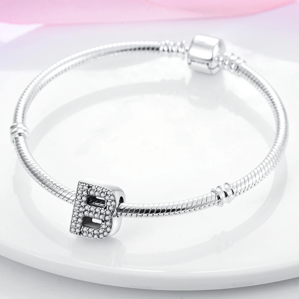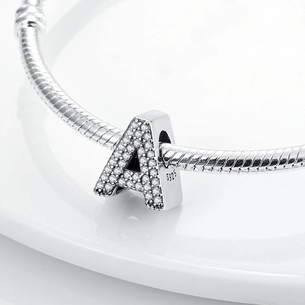 Real 925 Sterling Silver Charms Bracelets Classic 26 Letters Alphabet Charms Beads For Women Fine DIY Wedding Jewelry Gift