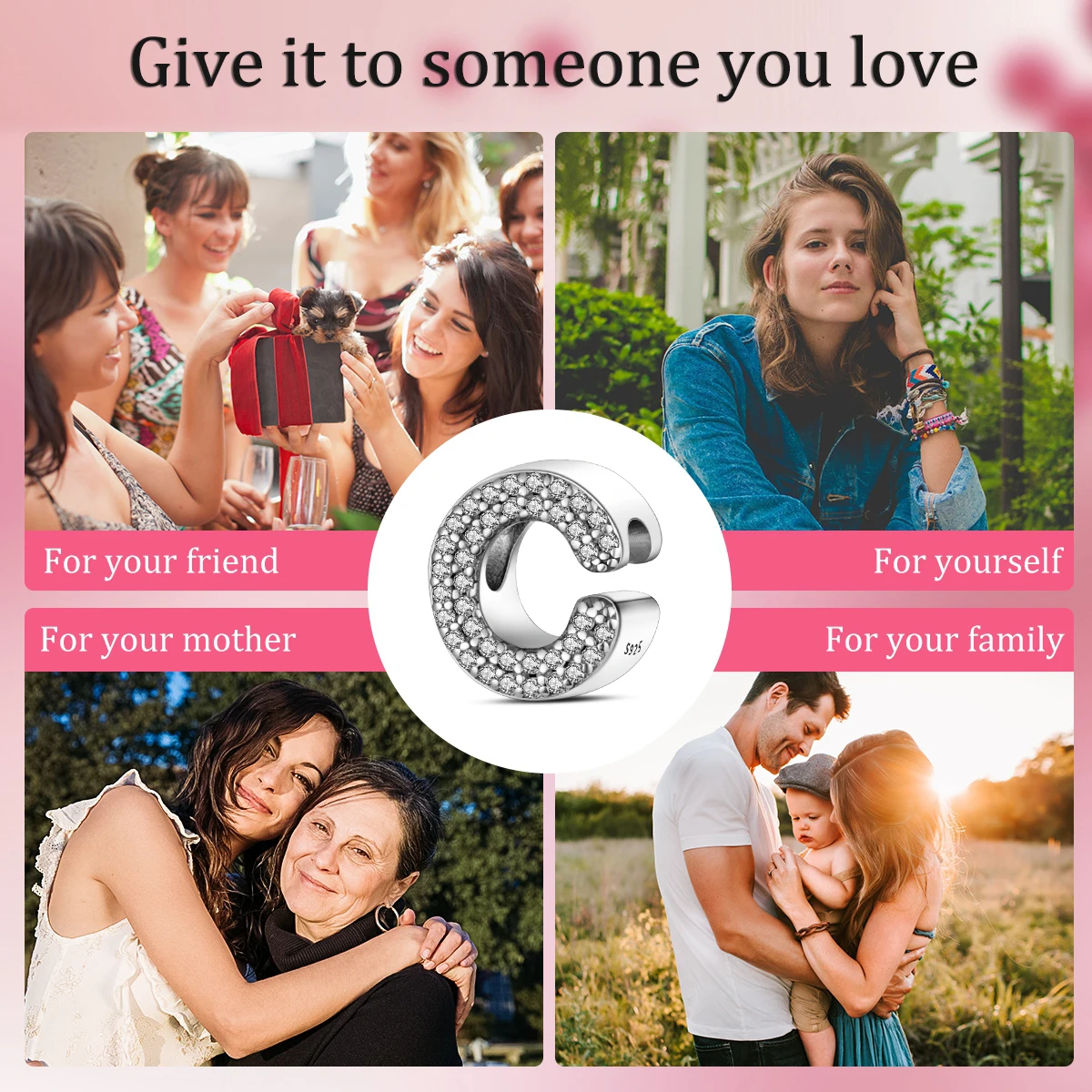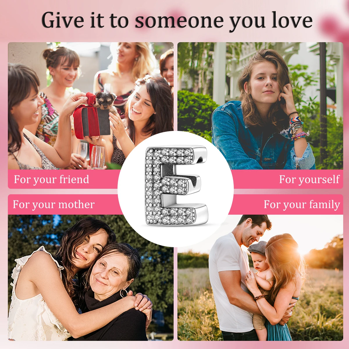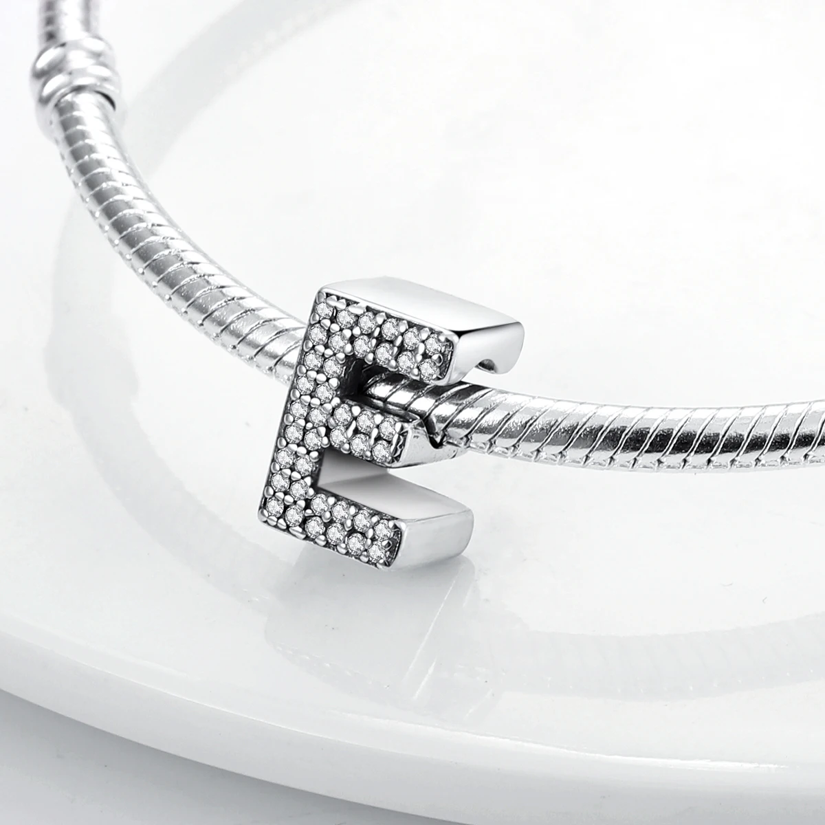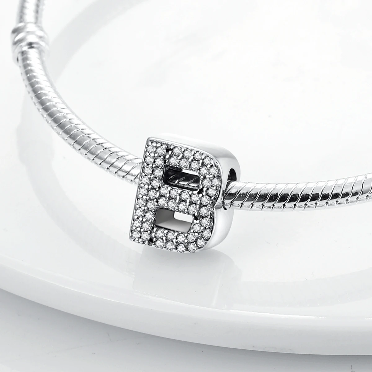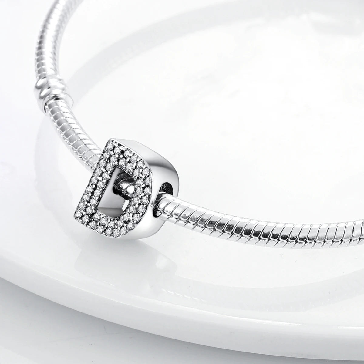 Real 925 Sterling Silver Charms Bracelets Classic 26 Letters Alphabet Charms Beads For Women Fine DIY Wedding Jewelry Gift