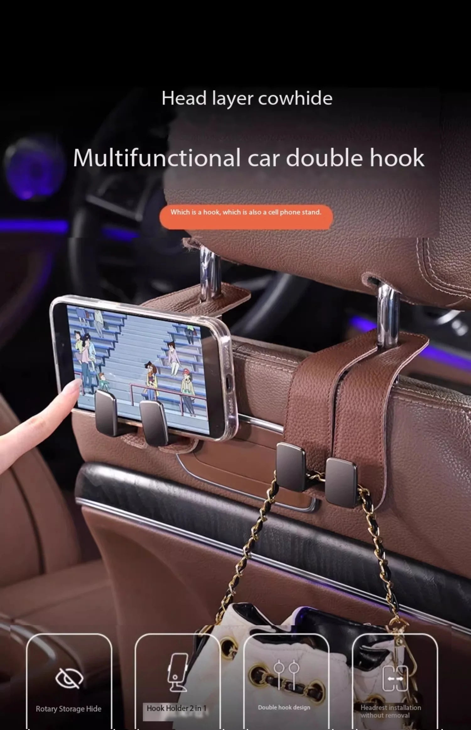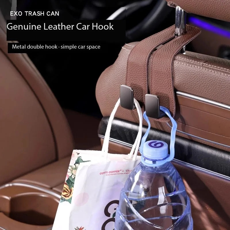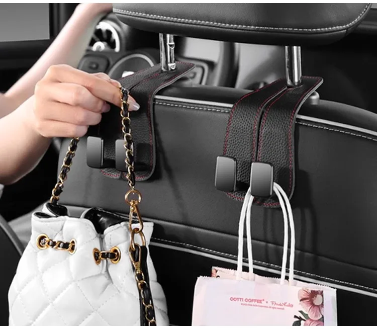 Real Leather Car Hook Seat Rear Front Seat Storage Bag Storage Bag Small Hook Clothes Sundries Hanger Clip Auto Car Parts