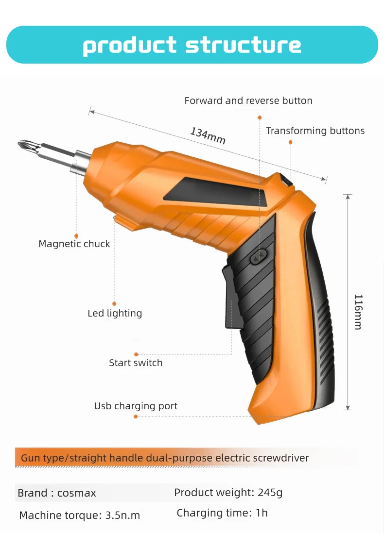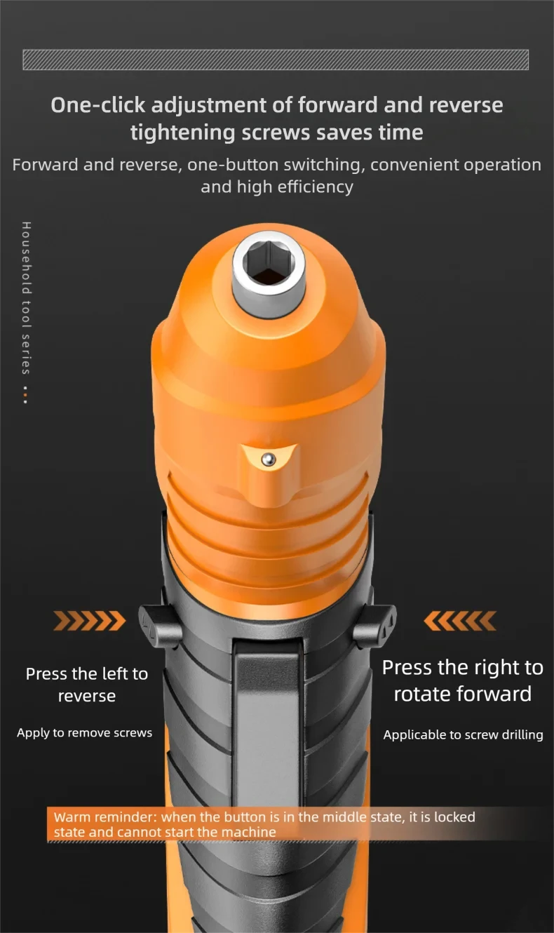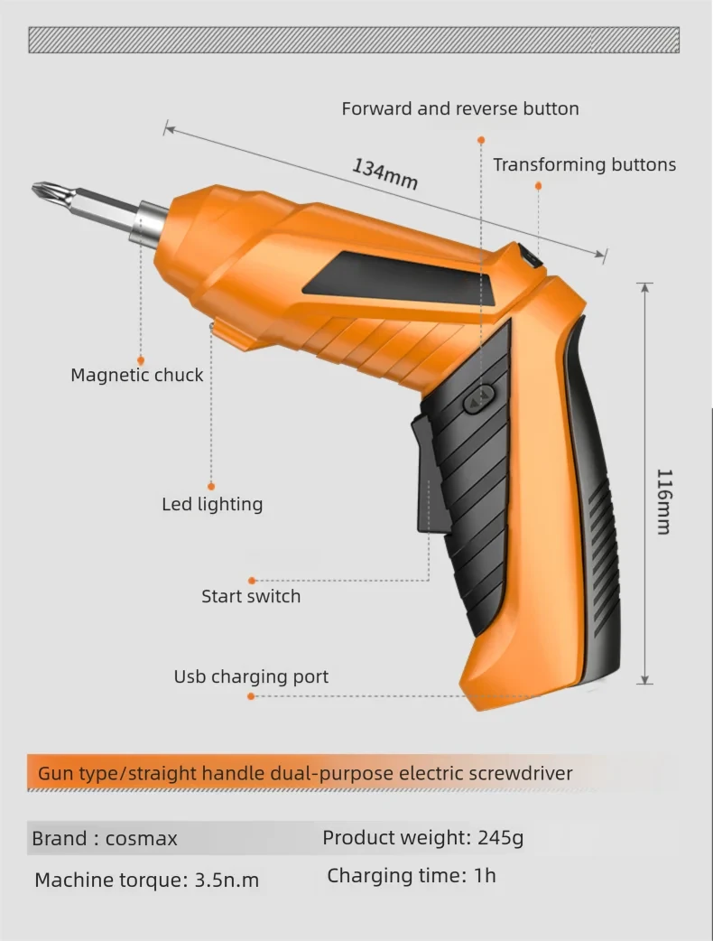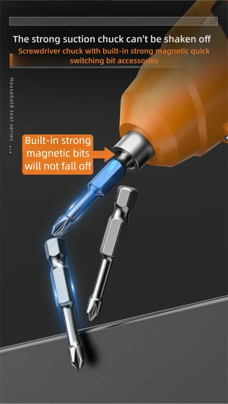 The compact design of this mini electric screwdriver makes it easy to handle and ideal for tight spaces, perfect for home use.