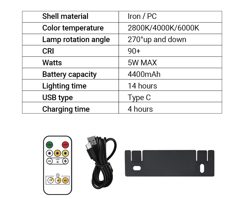 Color temperature: Remote dimming (3000K-6500K, light and dark)
