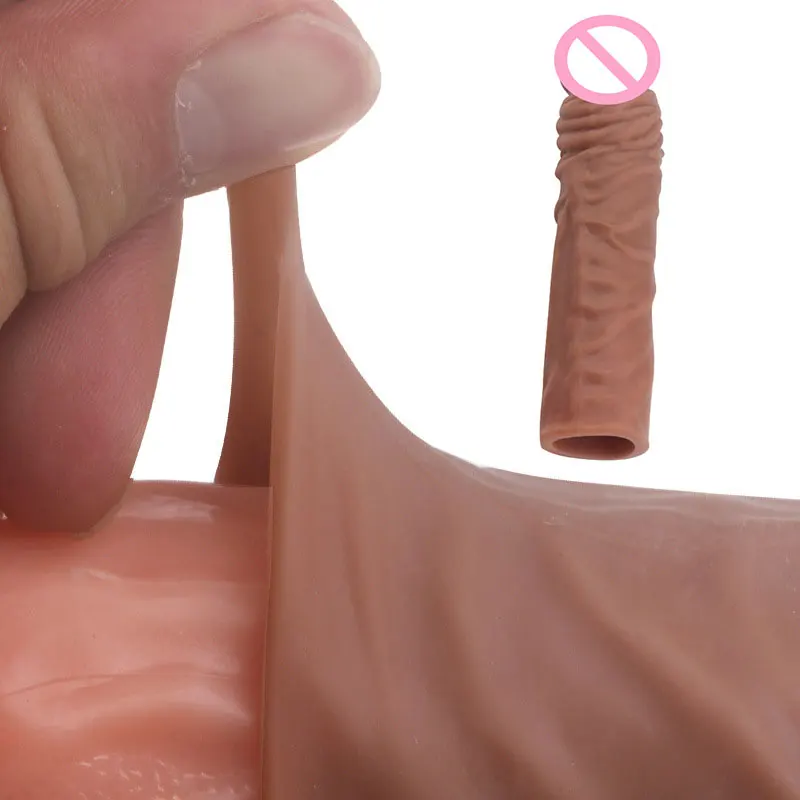 Reusable Penis Enlargement Male Cock Time Sex Toys For Men Organ Chastity Silicone Condoms Penis Extension Ring Sleeve