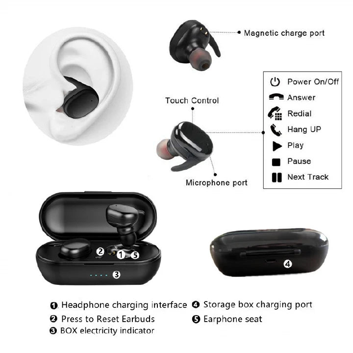 RichRipple RR30 Y30 Wireless Bluetooth Stereo Earbuds: Mic, Touch Control, Charging Case