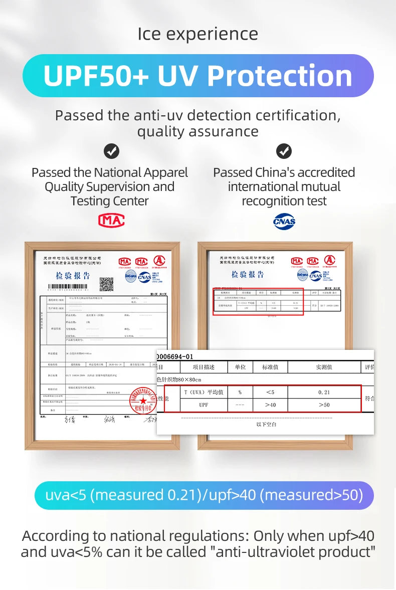 8. UPF50+ UV Protectionn; UVA < 5 ( Measured 0.21)