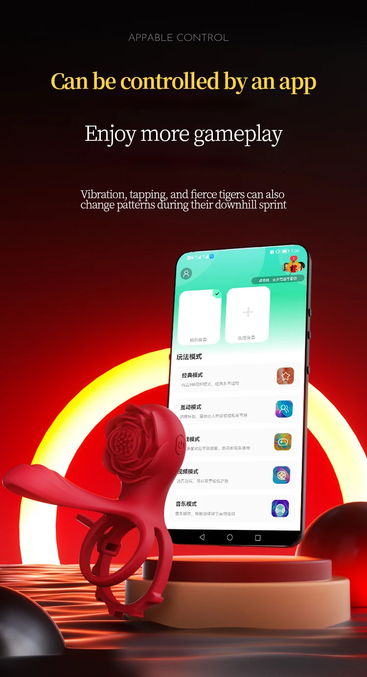 Rose Double Vibration Lock Essence Ring APP Sex Couples Sexy Adult Toy Semen Lock Ring Character Equipment Sex Toys Penis Ring