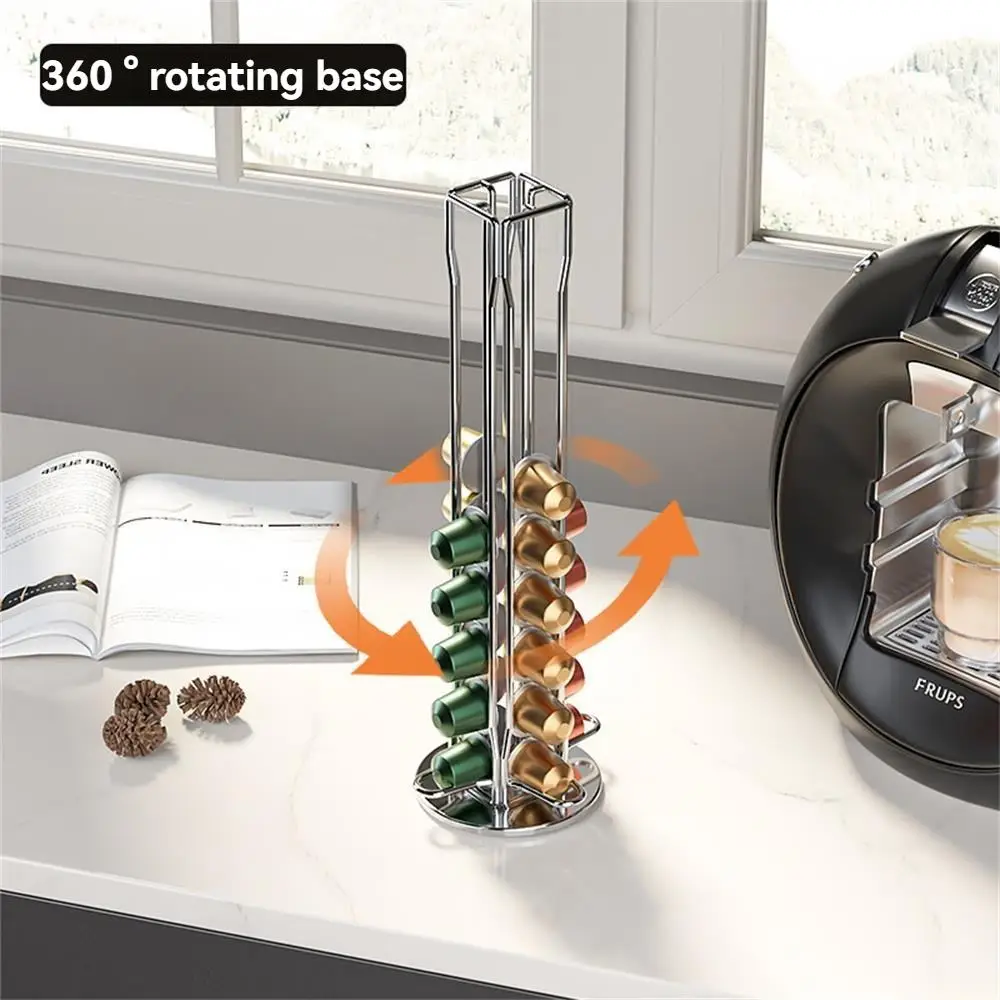 Rotatable Coffee Capsule Organizer Coffee Capsule Display Rack Max Capacity 40 Capsules 360 Degree Rotating Organizer Metal Plat